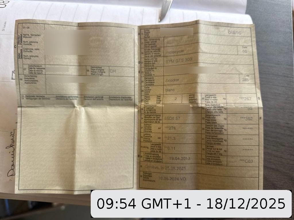 Aussenspiegel links, Diverse Anbauteile, Diverse Gebrauchsspuren, Griff links, Motor und Getriebe mit Risiko, konnten nicht geprüft werden, Rahmen mit Risiko, Seite links, Verschalungen links