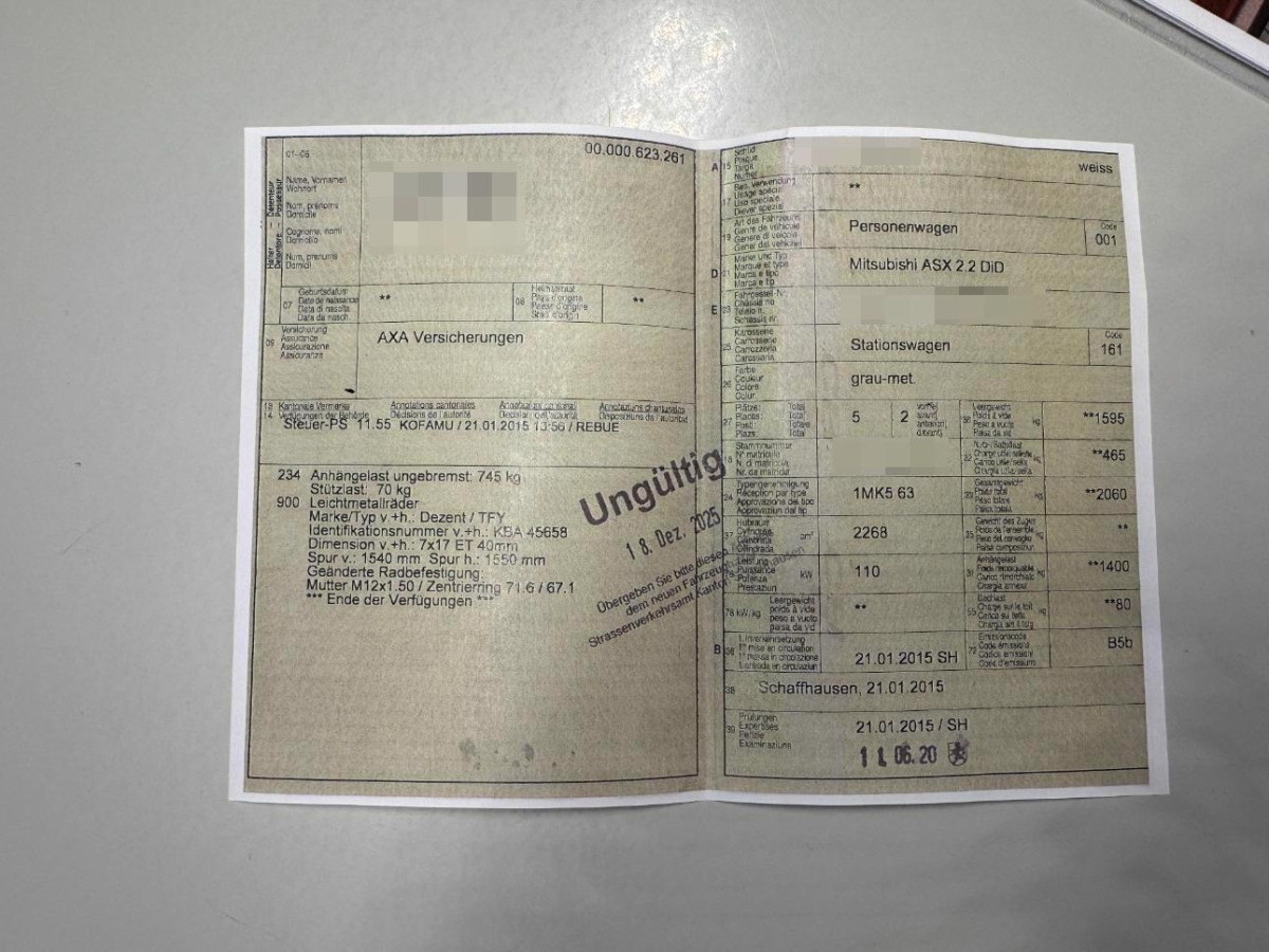 Fahrzeugausweis Vorhanden
