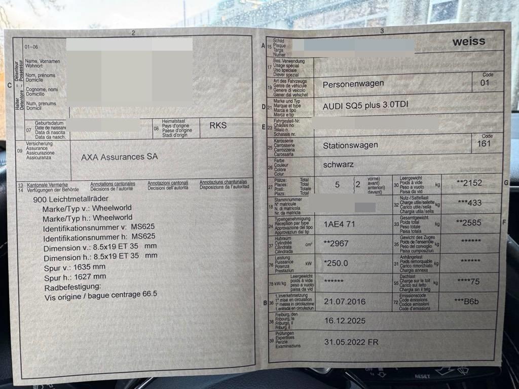 Lackierung: Uni-Lackierung, Klimaautomatik Komfort, Airbag: Airbag Fahrer und Beifahrer, Teppichfussmatten vorne und hinten, Garantie: 2 Jahre ohne Kilometerbegrenzung (ab 1. Inv.), Cupholder vorne und hinten, Gurtstraffer vorne, Volllederausstattung Feinnappa mit Rautensteppung, Laderaumabdeckung, Frontscheibe mit Wärmeschutzverglasung, Licht: Tagfahrlicht, Sitze: Vordersitze heizbar, Heckscheiben-Wisch-/Waschanlage, Antiblockiersystem (ABS), Dachhimmel schwarz, Dekoreinlagen in Aluminium matt gebürstet, Fussraumbeleuchtung vorne und hinten, Rücksitzbank verstellbar, Einstiegsschienen aus Carbon, Tire Fit (Reifendichtmittel) anstelle Faltrad, Beide Make up-Spiegel beleuchtet, Antriebsschlupfregelung (ASR), Make up-Spiegel rechts, Seitenairbag für Fahrer und Beifahrer, Elektronische Parkbremse, Kopfstützen hinten, Licht: Drittes Bremslicht, Einstiegsleisten in Aluminium, Ladekantenschutz in Edelstahl, Allradantrieb permanent, Lichtwarnsummer, Multifunktions-Sportlederlenkrad mit Schaltwippen, Servotronic, Alu-Räder im 10-Y-Speichen-Design 20J, Räder: Reifendruck-Kontrollanzeige, Klima: Pollenfilter (Staubfilter), Vordersitze elektrisch verstellbar mit Lendenwirbelstütze, Nebelscheinwerfer, Aussenspiegel in schwarz, Licht: Nebelschlussleuchte, Tempomat, Brillenablage, Abschliessbare Radschrauben, Xenon Plus-Lichtanlage inkl. LED Tagfahrlicht und LED Rückleuchten, Airbag: Window-Kopfairbags, Gepäcktrennnetz, Lenkrad: Lenkrad längs- und höhenverstellbar, Elektrische Fensterheber vorne + hinten, Aussenspiegel rechts und links beheizbar und elektrisch verstellbar, Mittelarmlehne vorne, mit aufklappbarem Staufach, zwei 12V Steckdosen, Assist: Bremsassistent (BAS), Beleuchtetes Handschuhfach, Digital Uhr, Steckdose 12V, Radio Chorus, Schwarze Aussenoptik, Sitze: Elektrisch einstellbare Lendenwirbelstütze für Vordersitze, Türgriffe aussen beleuchtet für Einstiegsbereich, Tageskilometerzähler, Fensterschachtzierleisten in Aluminium, Partikelfilter und Oxydationskatalysator, Rücksitzlehne geteilt abklappbar, Elektronische Differentialsperre (EDS), Höhenverstellbare Gurten vorne, Ausstiegsleuchten in den Türen, Leseleuchten hinten, Kofferraumwanne, Sportliche Fahrwerksabstimmung, Make up-Spiegel links, Sicherheitsgurte auf allen Plätzen, Fahrer-Informationssystem mit Farbdisplay, Zentralverriegelung mit Fernbedienung, Elektronisches Stabilitäts-Programm (ESP), Tagesfahrlichtschaltung, Innenlicht-Abschaltverzögerung, Dachreling schwarz, Sitze: Sportsitze vorne, Scheinwerfer-Waschanlage, Befestigungsösen im Laderaum, Scheibenwischer vorne mit Intervall, Heckscheibenheizung, Getriebe: 8-Stufen-Automat sequentiell, Wegfahrsperre elektronisch, Leseleuchten vorne, Getönte Scheiben