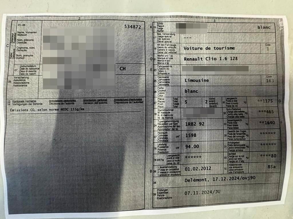 Aussenspiegel rechts und links beheizt und elektrisch verstellbar, asphärisch gewölbtes Spiegelglas, Kurvenlicht, Scheinwerfer-Waschanlage, Make up-Spiegel rechts, Radio/CD-Player und MP3 mit Bluetooth und Fernbedienung (Aux-In), Stoff-/Kunstleder-Ausstattung, Aktive Kopfstützen, Reifenreparatur-Set mit Kompressor, Antiblockiersystem (ABS), Kartentasche an der Rückenlehne, Bremsassistent (BAS), Höhenverstellbare Gurten vorne, Dunkel getönte Scheiben hinten, Scheibenwischer vorne mit Intervall, Tageskilometerzähler, Katalysator geregelt, Airbag Beifahrer deaktivierbar, Abblendlichtausschaltverzögerung 'Follow me home’, 3 Kopfstützen hinten, Lenkrad höhenverstellbar, Seitenairbag für Fahrer und Beifahrer, Navigationsgerät TomTom, Sitze: Fahrersitz in der Höhe verstellbar, Heckspoiler, ISOFIX-Kindersitzverankerungen hinten (2), Kreuzstütze für Fahrersitz verstellbar, Cupholder vorne, Rücksitzlehne geteilt abklappbar, Aschenbecher und Zigarettenanzünder, Servolenkung, Stossstangen und Aussenspiegel in Wagenfarbe, Sport-Lederlenkrad, Gurtstraffer vorne und hinten, Getriebe: 6-Gang-Getriebe, Leichtmetallfelgen 16J, Airbag: Airbag Fahrer und Beifahrer, Doppelscheinwerfer, Scheinwerfer schwarz, Zentralverriegelung mit Fernbedienung und automatischer Türverriegelung, 3-Punkt-Sicherheitsgurte auf allen Plätzen, Gurtkontrolle, Handschuhfach, Seitenschutzleisten in Schwarz, Radiovorbereitung, Antenne und Entstörung, Licht- und Regensensor, Aussentemperaturanzeige, Garantie: Renault Garantie 3 Jahre oder 100’000 km (ab 1. Inv.), Make up-Spiegel links, Tempomat mit Geschwindigkeitsbegrenzer, Window-Kopfairbags, Anti-Submarining-Airbags für Fahrer und Beifahrer, Elektrische Fensterheber vorne + hinten, Steckdose 12V, Lackierung: Uni-Lackierung, Türgriffe aussen verchromt, Heckscheiben-Wisch-/Waschanlage mit, Klimaanlage, Wegfahrsperre elektronisch, Heckscheibenheizung, Licht: Nebelscheinwerfer, Bordcomputer, Warnblinkautomatik bei Vollbremsung, Pollenfilter (Staubfilter)