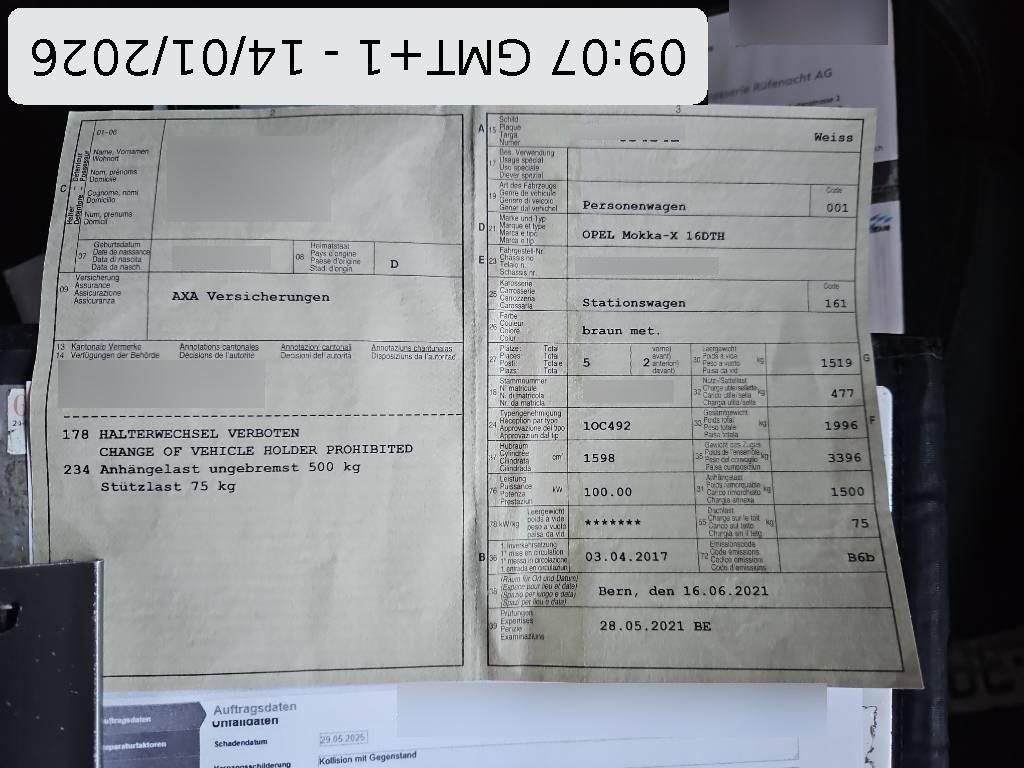 Die (vom Fahrzeugexperten) ermittelten Reparaturkosten beziehen sich auf das versicherte Ereignis. Allfällige zusätzliche, nicht versicherte Schäden/Vorschäden, sind in den Reparaturkosten nicht enthalten. Die deklarierten Ausstattungsmerkmale können von der effektiven Ausstattung abweichen.