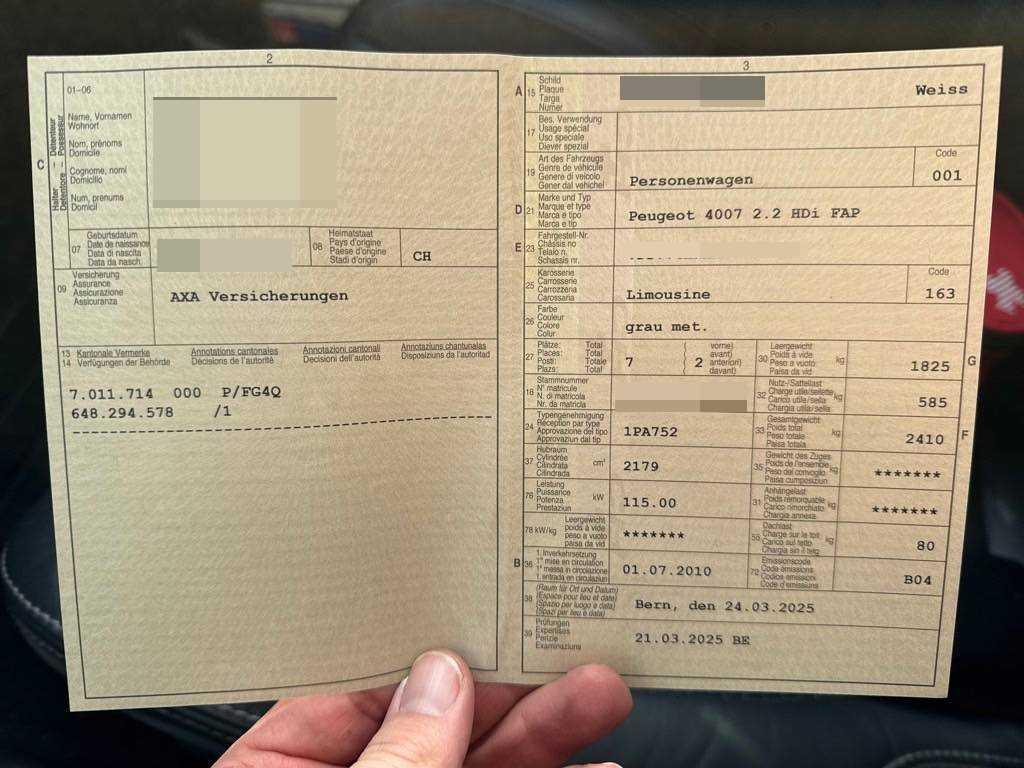 Fahrzeugausweis Vorhanden