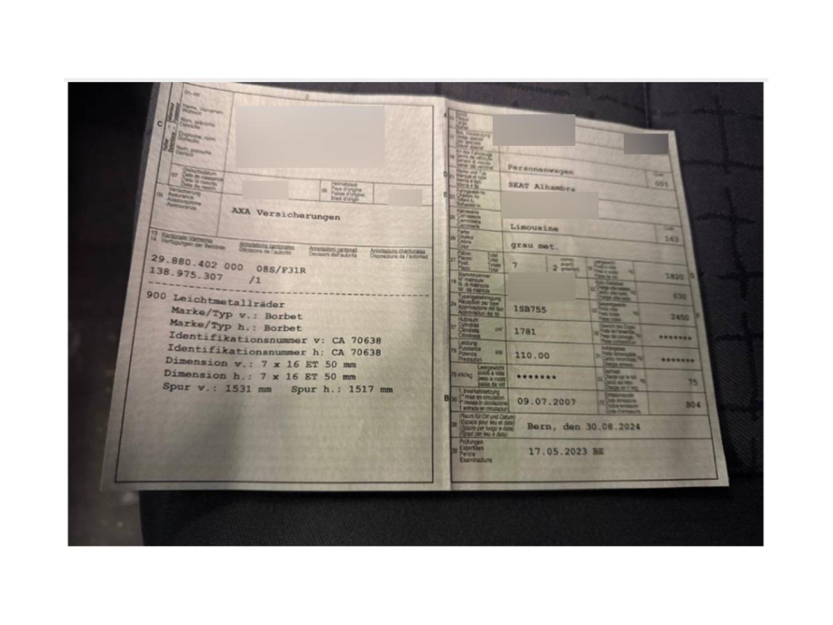 Fahrzeugausweis Vorhanden