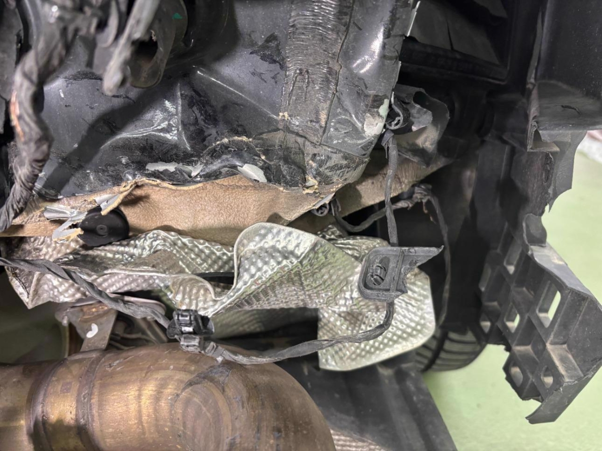 Auspuffanlage, Auspufftopf, Heck, Heck rechts, Heckdeckel, Hinterachse, Kofferraumboden, Längsträger hinten rechts, Rad hinten rechts, Radhaus hinten rechts, Rücklicht rechts, Seitenwand rechts, Stossstange hinten