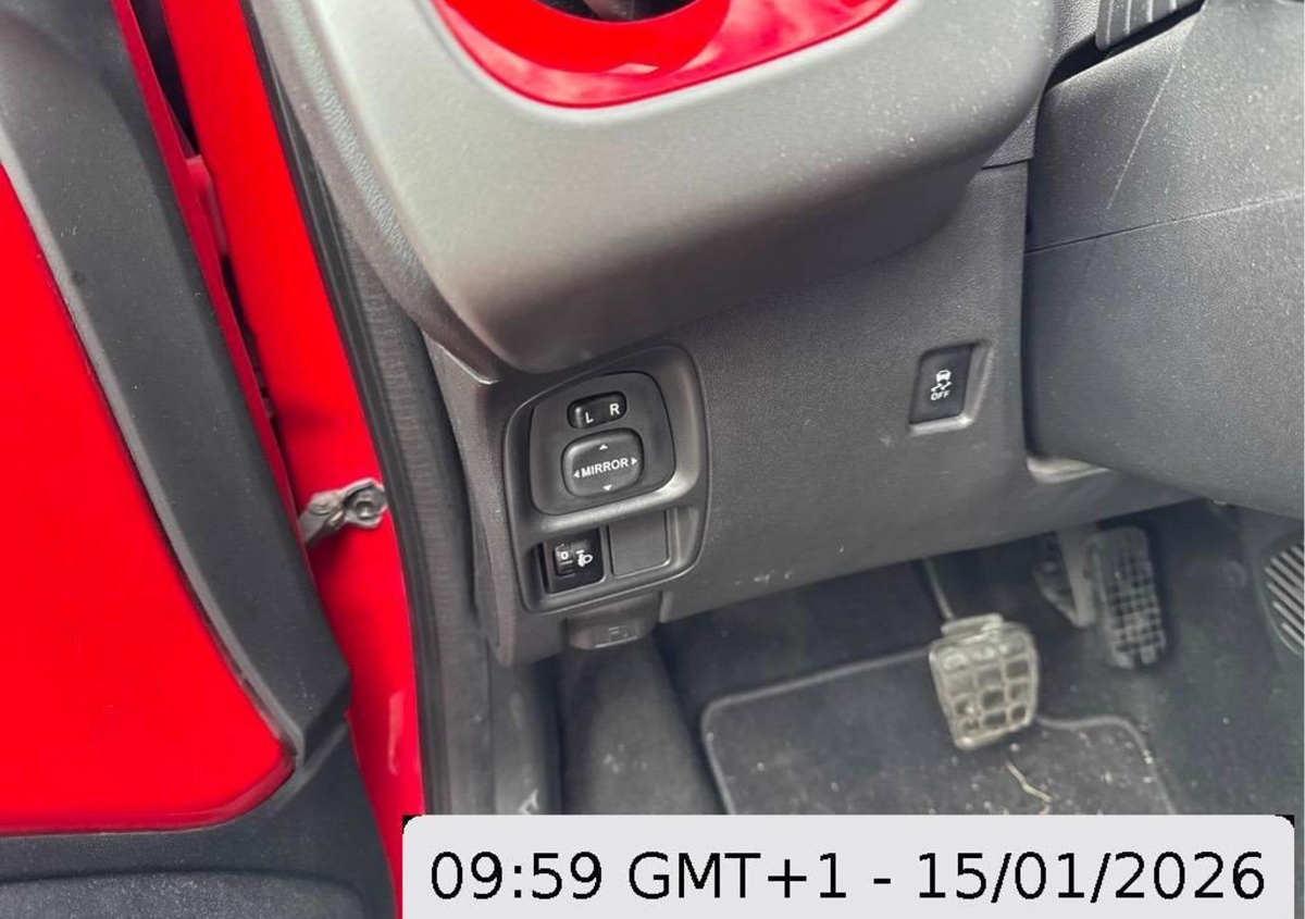 Klimaanlage, Griffe Lackiert Gelb, Kopf-Airbag, Außenspiegel Elektrisch Verstellbar, Nebelscheinwerfer, 4 Lautsprecher, Fensterheber Elektrisch, 5-Türig, Seitenairbag, Außenspiegel Lackiert, Multifunktionslenkrad, Zierleisten Lackiert, Heckwischer, VSC-Anlage, Bluetooth-System, Reifen 165/65 R15, Aluräder 4 J x 15, Keyless Entry/Drive, Batterie 42 Ah, Kupplung Automatisch, Rückfahrkamera