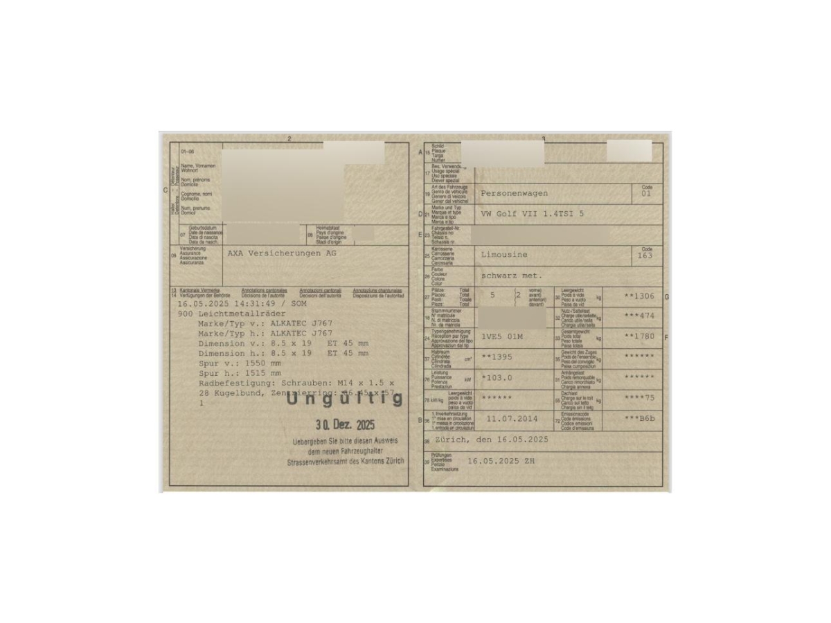 Fahrzeugausweis Vorhanden