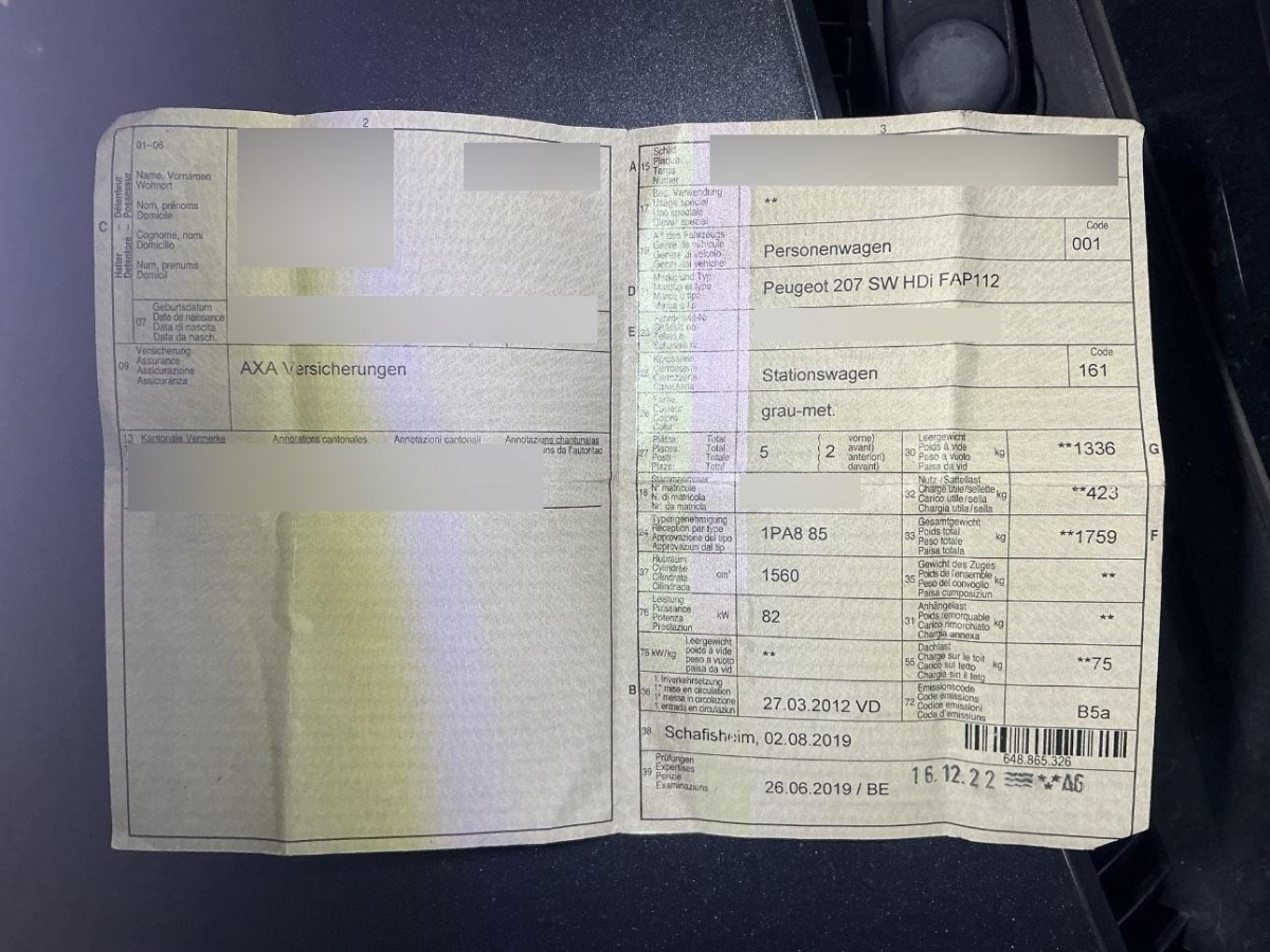 Fahrzeugausweis Vorhanden