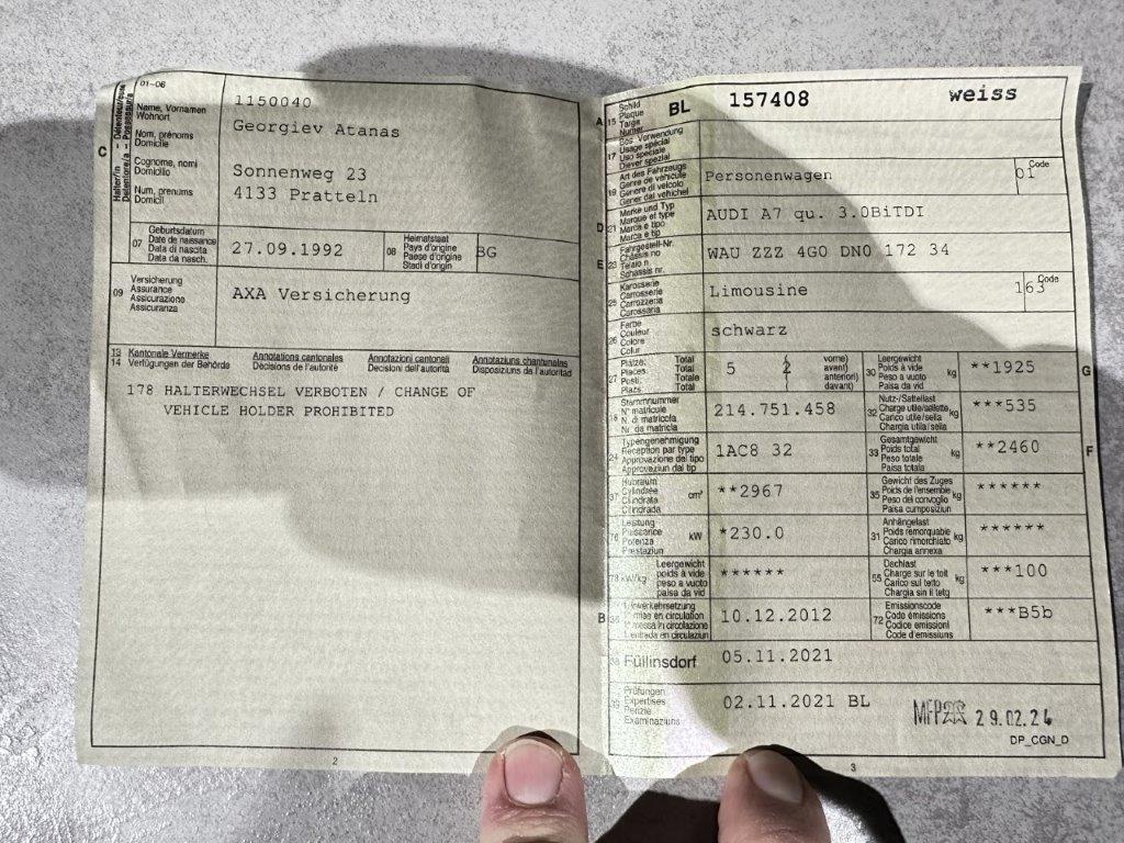 Fahrzeugausweis Vorhanden