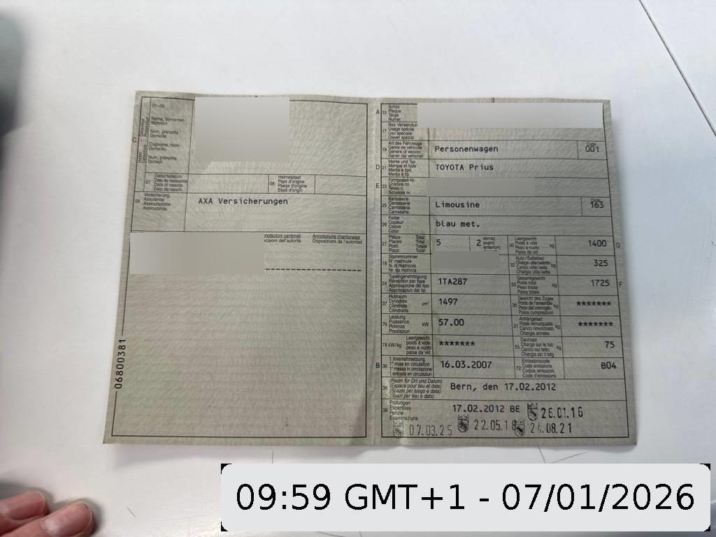 Fahrzeugausweis Vorhanden