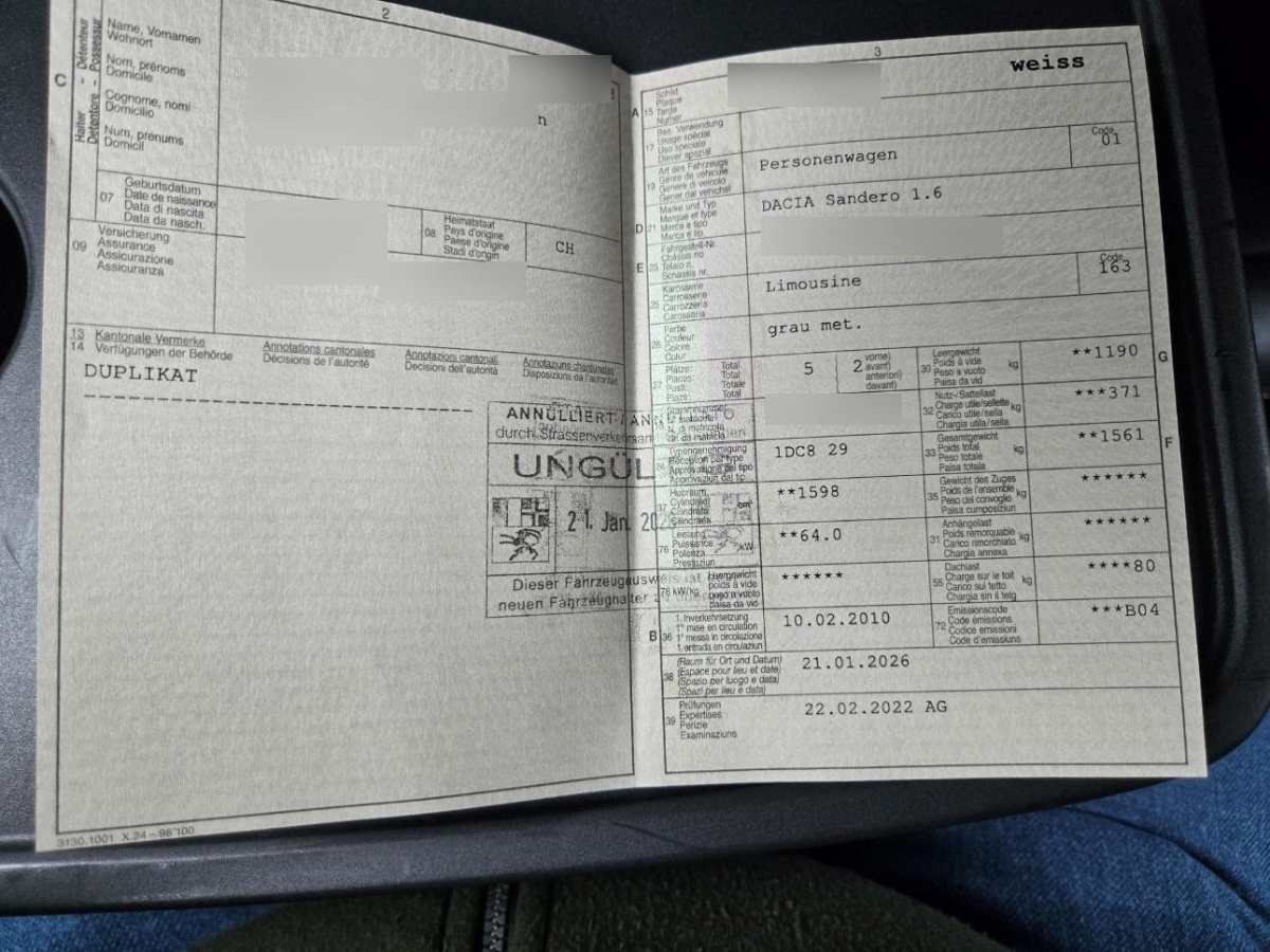 Fahrzeugausweis Vorhanden