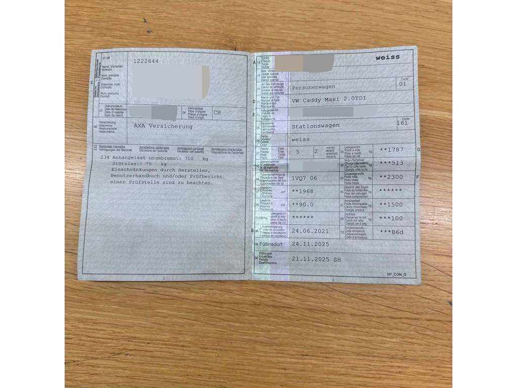 LED Leseleuchten im Fahrgastraum, Lenkrad: Lenkradsperre, Licht: Tagfahrlicht, Teppichboden vorne und hinten, Licht: Nebelschlussleuchte, Ablagefächer in den Fahrerhaus- und Schiebetüren, Lackierung: Uni-Lackierung, Drehzahlmesser, Höhenverstellbare 3-Punkt-Automatik-Sicherheitsgurte mit Gurtstraffer und höhenverstellbare Kopfstützen im Fahrerhaus, Entfall der 3. Sitzreihe, jedoch mit Sitzvorbereitung, Media: Multifunktionsanzeige plus, Dachgalerie im Fahrerhaus, Bewegungsenergierückführung, Cockpit-Blende matt, Heckklappe mit beheizbarem Fenster und Heckscheibenwischer, Assist: Ausweichunterstützung und Abbiegeassistent, Dachreling schwarz, Zentralverriegelung mit Funkfernbedienung und Innenbetätigung, Getriebe: 7-Gang-Getriebe Automatik, Media: Radio”Composition Audio” mit 6,5″ Touch-Farbdisplay und 4 Lautsprechern, Mobiltelefon-Schnittstelle, Lenkrad: Multifunktionslenkrad in Leder mit Schaltwippen, Geschwindigkeitsabhängige Servolenkung, Elektronische Wegfahrsperre, ESP, elektr. Stabilitätsprogramm mit ABS, EDS, ASR und MSR, Türen: 4 feste Fenster im Fahrgastraum, Media: Digitaler Radioempfang DAB+, Elektrisch verstellbare Aussenspiegel, Kindersicherung für Schiebetüren, Make-up Spiegel vorn, Licht: Drittes Bremslicht, Räder: 4 Stahlfelgen 6,5 x 17 mit Reifen 215/55 R17 98H, Katalysator geregelt, Aussenspiegelgehäuse in schwarz lackiert, Türgriffe in Wagenfarbe und Schiebetürschiene in silber, Isofix und Top Tether auf äusseren Sitzen in der 2. Sitzreihe, 12 Volt-Steckdose im Laderaum, Türen: 2. Schiebetüren, Abschliessbares Handschuhfach mit Beleuchtung, Scheibenwischer-Intervallschaltung mit Lichtsensor, Mittelarmlehne vorn, höhen- und längsverstellbar mit 2 Getränkehaltern vorn und 2 Luftausströmeern hinten, Sitze: Fahrersitz längs- und höhenverstellbar, Sitze: 3er-Sitzbank in der 2. Sitzreihe (klapp-, wickel- und herausnehmbar), Lenkrad: Lenksäule in Höhe und Länge verstellbar, Polster: Stoffsitzbezüge Dessin Double Grid, Seitenscheiben vorn in Wärmeschutzglas, Seitenscheiben hinten und Heckscheibe abgedunkelt, zu 74 % lichtabsorbierend, 3-Punkt-Automatik-Sicherheitsgurte und höhenverstellbare Kopfstützen für alle Plätze hinten, Räder: Rollwiderstandsoptimierte Reifen, Luftausströmer, vorn in mattem Schwarz, Räder: Radvollblenden, Airbag: Front-, Seiten- Mitten- und Kopfairbag in 1. Sitzreihe, Assist: Geschwindigkeitsregelanlage inkl. Geschwindigkeitsbegrenzer, Elektrische Fensterheber, Lenkrad: Multifunktionslenkrad, Assist: Notbremsassistent Front Assist mit Fussgänger- und Radfahrererkennung, Räder: Tire Mobility Set (Reifendichtmittel und 12 Volt Kompressor), Gepäckraumabdeckung, klappbar, Airbag: Kopfairbag für 2. Sitzreihe, Motor-/Start-Stopp, Licht: Leuchtweitenregulierung, 2 Schlüssel mit Funkfernbedienung, Stossstangen in Wagenfarbe, Abblendbarer Innenspiegel, 4 Verzurrösen im Laderaum, Räder: Reifendruckkontrollanzeige, Sitze: Beifahrersitz vorn längsverstellbar, Radlaufspoile, Klima: Klimaanlage