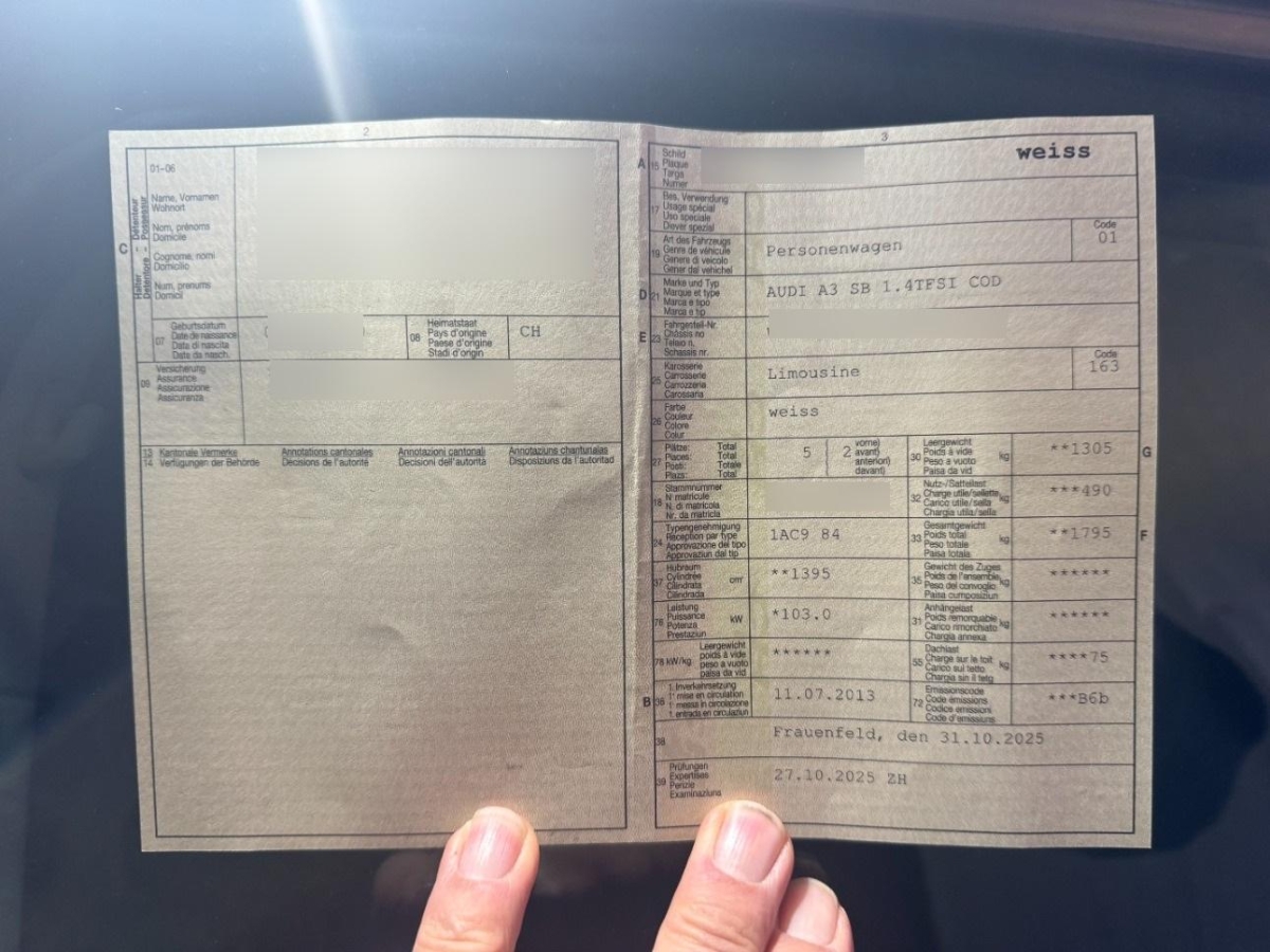 Fahrzeugausweis Vorhanden