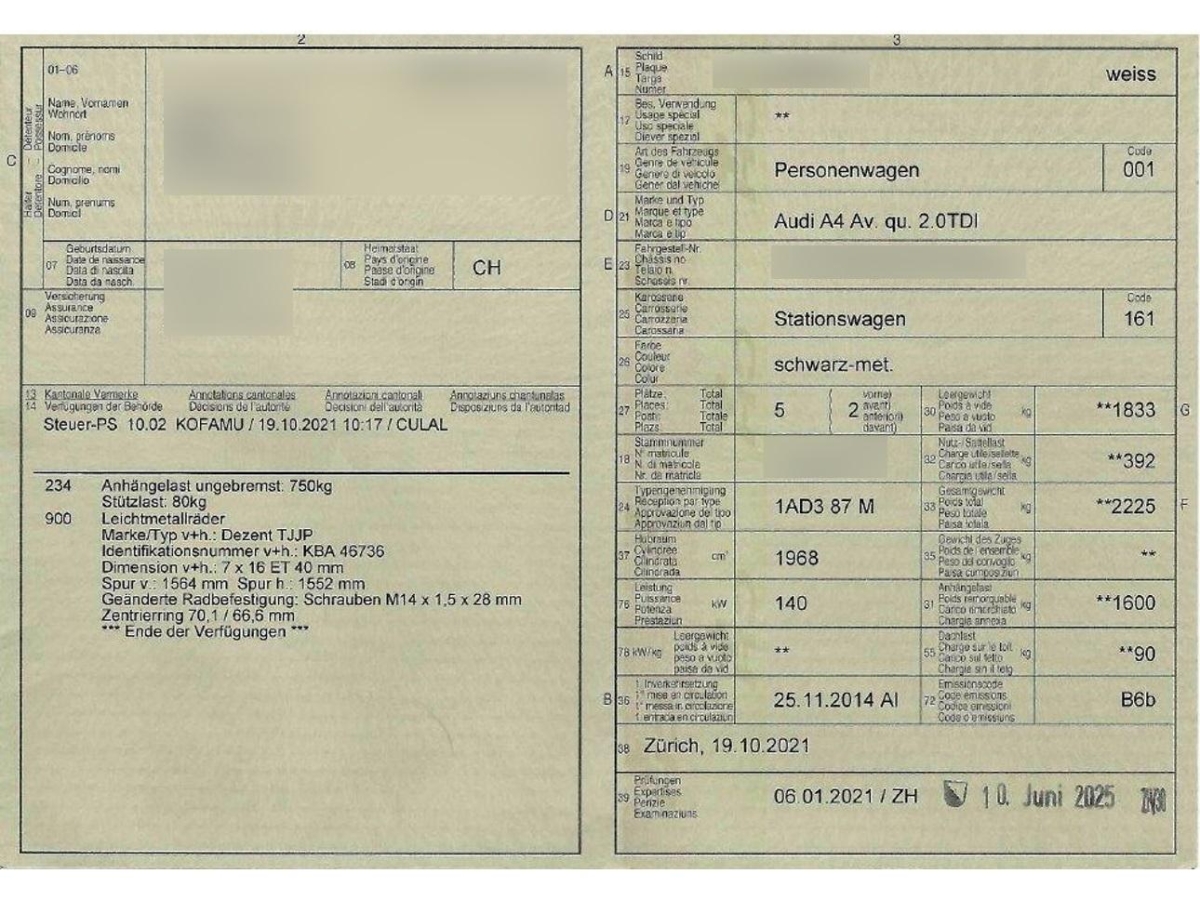 Lichtpaket, Notrad, Fensterschachtzierleisten in Aluminium, Media: Bluetooth-Schnittstelle, Media: Digitaler Radioempfang (DAB), Kindersitzvorrichtung ISOFIX mit Deaktivierungsschalter für Beifahrer- Airbag, Aussenspiegel rechts und links beheizbar und elektrisch anklappbar, automatisch abblendend, Dachreling blank, Multifunktions-Lederlenkrad 4-Speichen, Milano Leder-Ausstattung, Durchladesystem inkl.Skisack, Radio Concert, Scheinwerfer-Waschanlage, MMI Navigationssystem