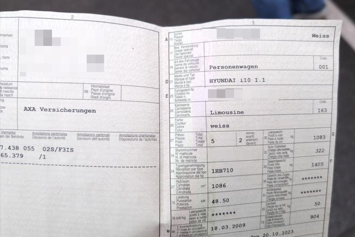 | Fahrzeugausweis | Vorhanden |