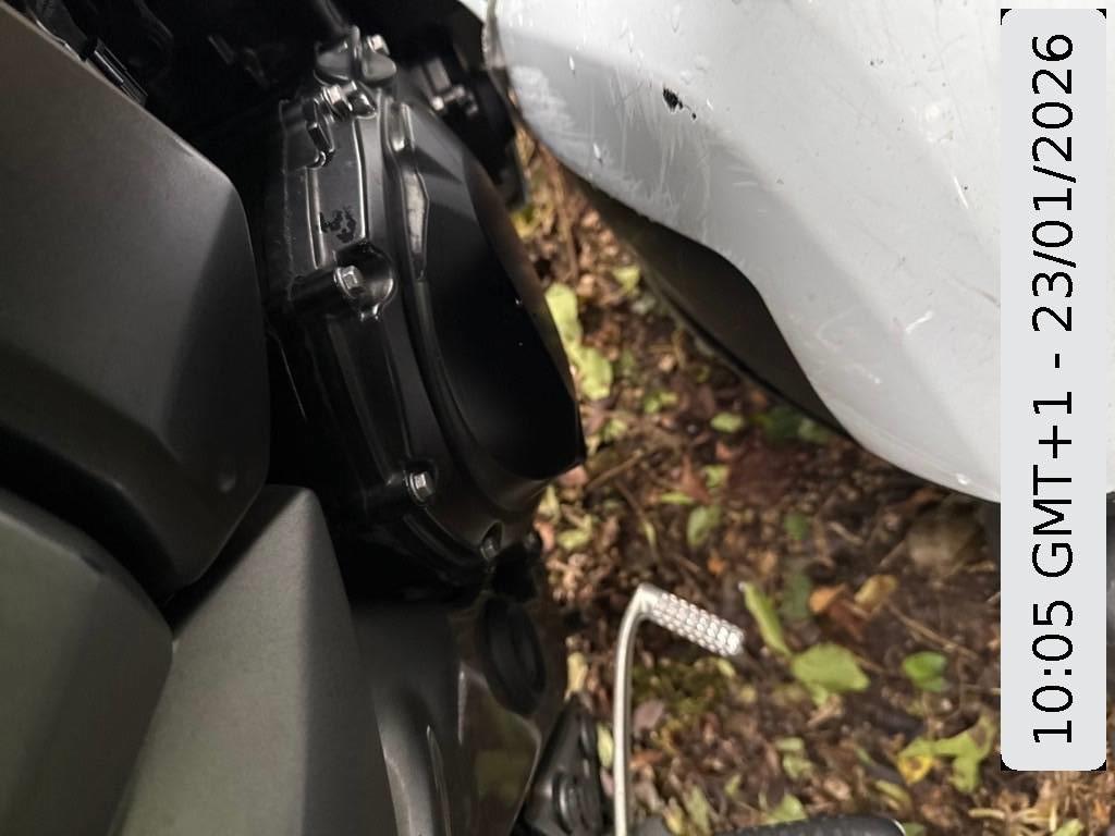 Armaturen, Aussenspiegel links, Front, Fussraster links, Gabelholm, Griff links, Kühler, Motor, Motorgehäuse, Rad vorne, Scheinwerfer, Schutzblech vorne, Sitz, Verschalungen vorne, Zündschloss