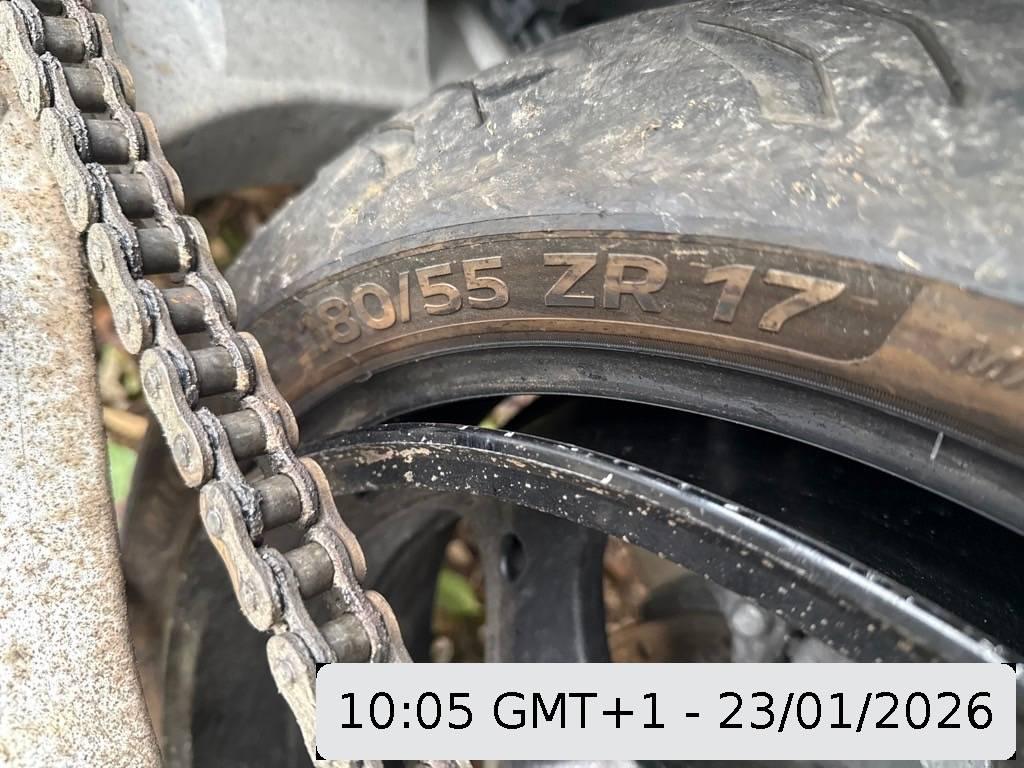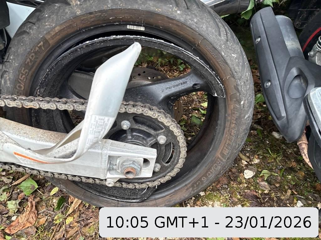 Auspuffkollektor, Auspufftopf, Aussenspiegel rechts, Front, Fussraster rechts, Griff rechts, Heckverkleidung, Lenker, Rad hinten, Rahmen, Rücklicht, Schutzblech hinten, Schwinge, Seite rechts, Tank, Verschalungen links, Verschalungen rechts, Verschalungen vorne, Windschutzscheibe