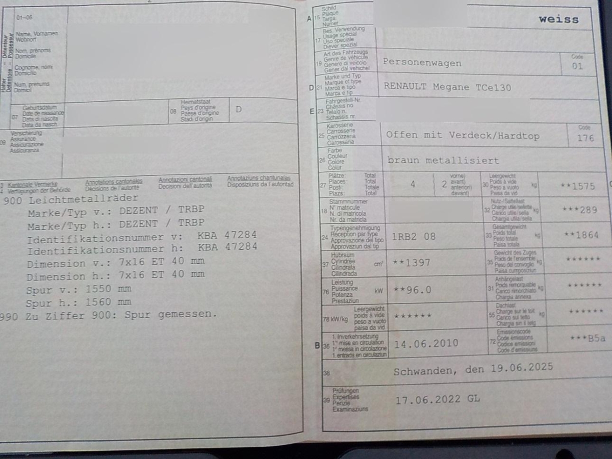 | Fahrzeugausweis | Vorhanden |