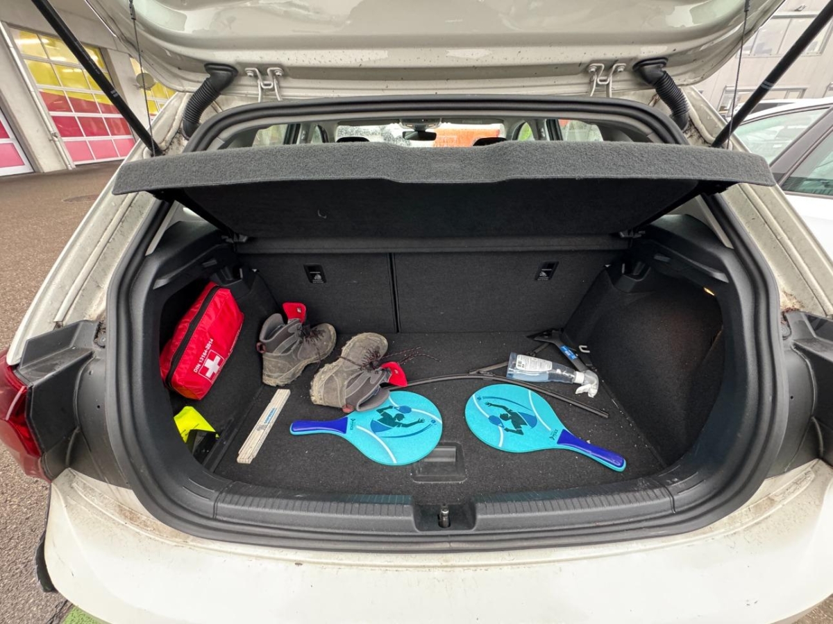 Gepäckraumabdeckung, Licht: LED-Scheinwerfer mit Tagfahrlicht, Gepäckraumboden höhenverstellbar, Sitze: Normalsitze vorne, Media: DAB+ (Digital Audio Broadcasting), Licht: Automatische Fahrlichtschaltung mit LED-Tagfahrlicht „Leaving home”- und manueller „Coming home”-Funktion, Licht: LED-Kennzeichenbeleuchtung, Media: Radio „Ready 2 Discover” inkl. „Streaming & Internet” – farbiger 8.0″-Touchscreen, FM-Empfang, 6 Lautsprecher, 2 USB-C Schnittstellen, Heckscheibenwischer mit Intervallschaltung, Textilfussmatten vorn und hinten, Beach Paket, Stossfänger in Wagenfarbe mit Chromeinfassung des Lufteinlassgitters, Make-Up Spiegel beleuchtet in den Sonnenblenden, Kopfstützen (5x), vorn sicherheitsoptimiert, Lenkrad: Multifunktions-Lederlenkrad, Aussenspiegel elektrisch einstell-, anklapp- und beheizbar, mit Beifahrerspiegelabsenkung, Hochton-Signalhorn, Kombi-Instrument mit elektronischem Tachometer, Kilometer- und Tageskilometerzähler, Drehzahlmesser, Polster: Sitzbezüge in Stoff, Design „Slash/Austin”, Wegfahrsperre elektronisch, Servolenkung elektromechanisch, Umfeldbeobachtung 'Front-Assist’ mit City-Notbremsfunktion, Elektronisches Stabilisierungsprogramm ESP inkl. ABS mit Bremsassistent, ASR, EDS und MSR, Sitze: Lendenwirbelstützen vorn, 4 Türen, Sitze: Vordersitze höhenverstellbar, Warndreieck, Dachhimmel in Ceramique, Garantie: VW Garantie: 2 Jahre ohne Kilometerbegrenzung (ab 1. Inv.), Reifendruckkontrollanzeige, Nichtraucherausführung – Ablagefach und 12-V-Steckdose vorn, Ablagetaschen an den Rückseiten der Vordersitze, Airbag: Kopf- und Seitenairbags vorn, mit Center-Airbag, Assist: Bergabfahrassistent, Bordwerkzeug und Wagenheber, Licht: Nebelscheinwerfer inkl. Abbiegelicht, Räder: Leichtmetallräder „Essex” 5,5 J x 15 – 4 Leichtmetallräder 5,5 J x 15 – Reifen 185/65 R15 – Radsicherungen mit erweitertem Diebstahlschutz, Klima: Klimaanlage manuell, Media: App-Connect „Spiegelung” des Smartphone Displays zur Nutzung zertifizierter Apps während der Fahrt, Ablagen in den Türen, Sitze: Rücksitzlehne asymetrisch geteilt umklappbar, Gepäckraumbeleuchtung, Start-Stopp System mit Bremsenergie-Rückgewinnung, ABS, EBD elektronische Bremskraftverteilung, Assist: Müdigkeitserkennung (erkennt aufgrund charakteristischen Lenkverhaltens, Tageszeit und Fahrdauer Anzeichen einer eventuellen Müdigkeit des Fahrers und gibt eine optische und akustische Warnung aus), Licht: Rückleuchten in LED-Technik, Mittelarmlehne vorn höhen- und längseinstellbar, mit Ablagebox, Dreipunkt-Automatiksicherheitsgurte vorne mit Höheneinstellung und Gurtstraffer, Gurtstatusanzeige und Warnton für nicht angelegte Gurte vorn und hinten, Zentralverriegelung mit Funkfernbedienung mit zwei Funkklappschlüssel, Airbag: Airbag für Fahrer und Beifahrer mit Beifahrerairbag-Deaktivierung, ISOFIX-Halteösen für Kindersitze auf dem äusseren Rücksitzen sowie auf dem Beifahrersitz, Bordbuchhalterung unter linkem Vordersitz, Dekor: Dekoreinlagen „Lave Stone Black” für Instrumententafel und Türverkleidung, Lenkrad: Lenksäule in Höhe und Länge verstellbar, Instrumententafel geschäumt, Leseleuchten, 2 vorn und 2 hinten, mit Abschaltverzögerung und Dimmfunktion, Fensterheber vorne und hinten elektrisch, Digital Cockpit, Schaltknauf und Handbremshebel in Leder, Assist: Fussgängererkennung