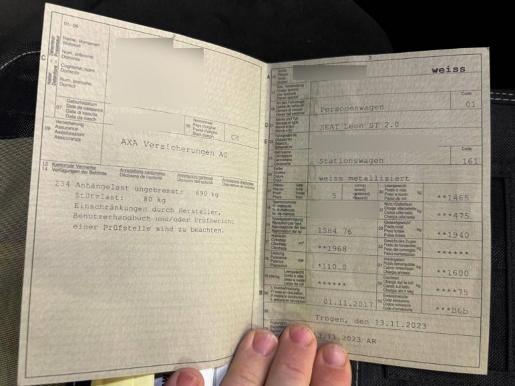 Sitze: Rücksitzlehne mit Fernbedienung aus Kofferraum, Schublade unter Fahrersitz, Zwischenboden im Kofferraum, 4 Leichtmetallfelgen 16J mit Pneu, SEAT Media System Color, Reifenpannen-Set (Tire Kit), Media: DAB+ (Digital Audio Broadcasting), Klima: 2-Zonen-Klimaautomatik, Gurte Höhenverstellbar vorne, Lenkrad: Ledermultifunktionslenkrad, Lenkrad längs- und höhenverstellbar, XDS inkl. Berganfahrassistent, Assist: Multikollisionsbremse, Airbag: Window-Kopfairbags vorne und hinten, Pollenfilter (Staubfilter), Handschuhfach Beleuchtet, Tankdeckel-Entriegelung von innen, Wegfahrsperre elektronisch, Teppichfussmatten vorne und hinten, Elektronische Parkbremse, Licht: Bremslicht Drittes, Elektronische Traktionskontrolle (ASR/TCS), Airbag: Knie-Airbag für Fahrer, Bremsenergie-Rückgewinnung, ISOFIX Kindersitzvorrichtung, Heckscheibenheizung, Aussenspiegel und Türgriffe in Wagenfarbe, Make up-Spiegel beleuchtet für Fahrer, Doppelscheinwerfer, Getriebe: Sequentielles 6-Gang-Getriebe mit Automatikfunktion Automatikfunktion, Gurtkontrolle, Zentralverriegelung mit Fernbedienung, Heckscheiben-Wisch-Waschanlage mit Intervall, Assist: Müdigkeitserkennung, Aussenspiegel mit LED Blinker, Sitze: Mittelarmlehne hinten, Partikelfilter und Oxydationskatalysator, Fahrersitz mit Lendenwirbelstütze, Licht: Halogenscheinwerfer, Airbag: Seitenairbag für Fahrer und Beifahrer, Aussentemperaturanzeige, Seitenaufprall-Schutzsystem, Elektrische Fensterheber vorne mit Komfortbetätigung und Einklemmschutz, Media: USB-Anschluss, Licht: Nebelscheinwerfer mit Cornering-Funktion, Rücksitze geteilt abklappbar, Bordcomputer und Display, Wärmeschutzverglasung, Polster: Stoff-Ausstattung, Elektrische Fensterheber hinten, 12-Volt-Steckdose vorne, Airbag: Fahrer und Beifahrer Airbag, Media: Lautsprecher 6, Make up-Spiegel rechts, Schalthebelknauf in Leder, Assist: Tempomat, Kofferraumbeleuchtung, Licht: Nebelschlussleuchte, Kopfstützen hinten (3), 3-Punkt-Sicherheitsgurte auf allen Plätzen, Make up-Spiegel links, Elektronisches Stabilitäts-Programm (ESP) mit Reifendruckkontrolle, Bremsassistent (BAS) und Sperrdifferential, Licht: LED-Tagfahrlicht, Dachreling silber, Airbag: Beifahrerairbag deaktivierbar, Servolenkung, Aussenspiegel rechts und links beheizt, elektrisch verstell-/ und einklappbar, Sitze: Vordersitze höhenverstellbar, Gurtstraffer mit Gurtkraftbegrenzer vorne, Stop/Start-Technologie, Media: Mobiltelefon Freisprecheinrichtung Bluetooth, 5” Farbdisplay Touchscreen, Leuchtweitenregulierung von innen, Kopfstützen vorne höhenverstellbar, ABS, EBD elektronische Bremskraftverteilung