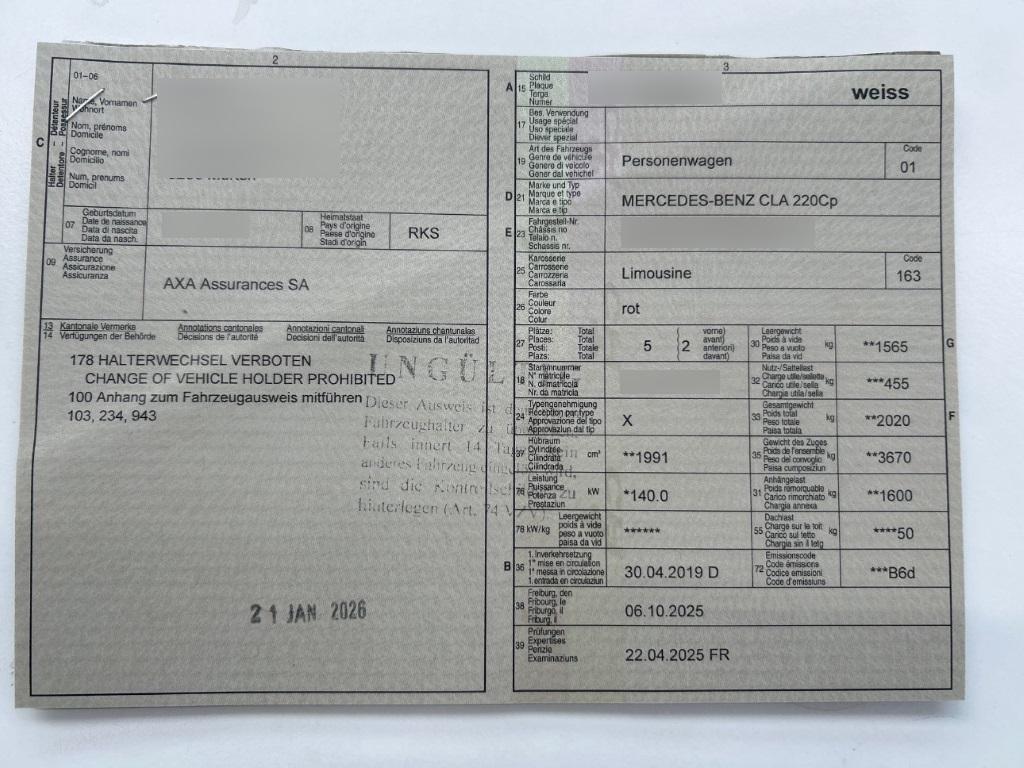Fahrzeugausweis Vorhanden