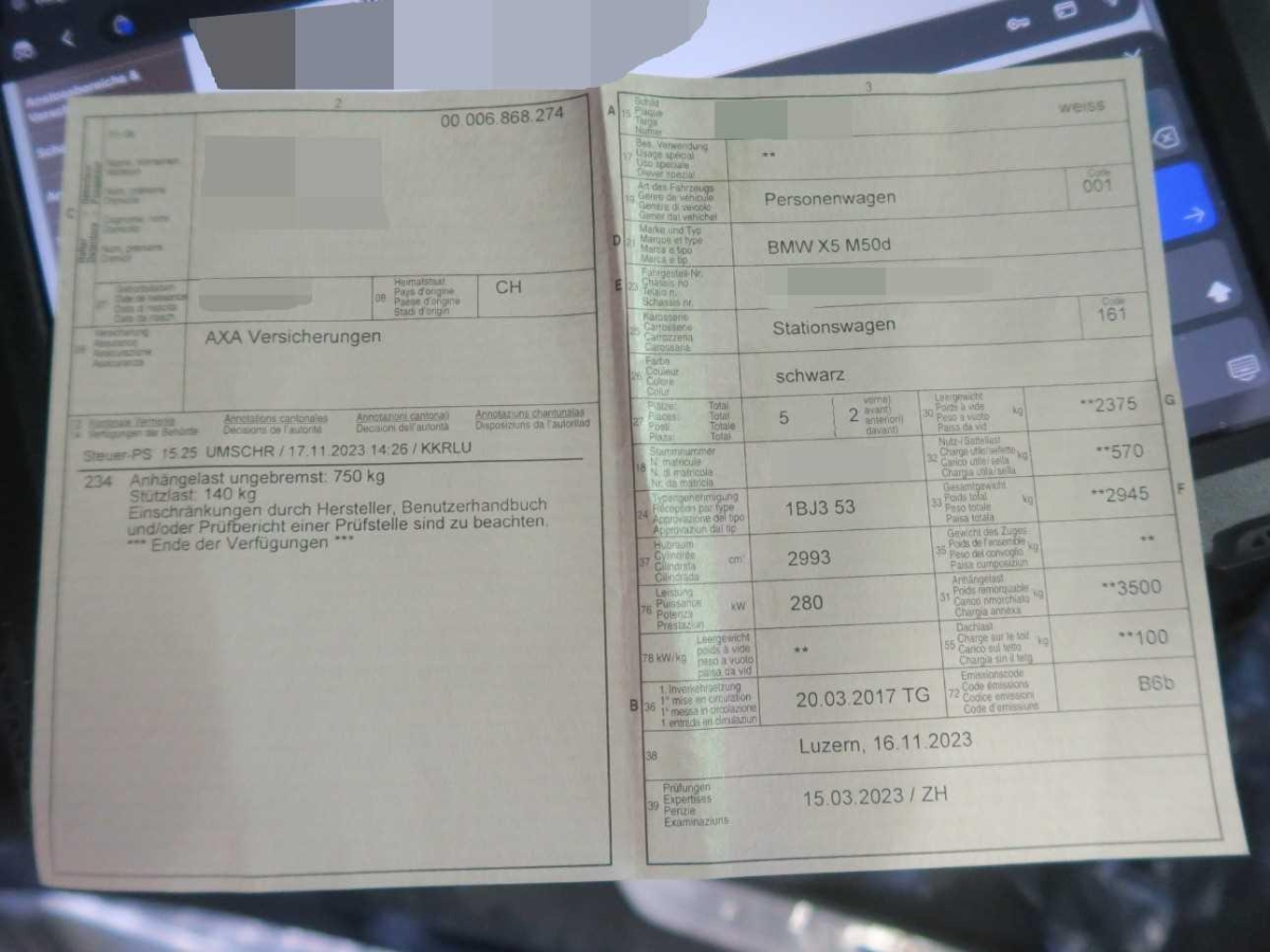 | Fahrzeugausweis | Vorhanden |