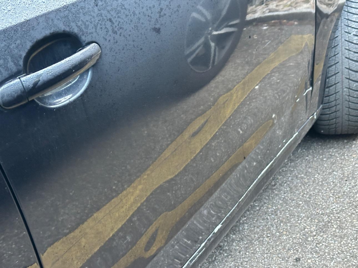 Das Fahrzeug hat rundum kleine Dellen, Beulen und Lackschäden, Diverse Gebrauchsspuren, Hagelschaden, Interieur verschmutzt