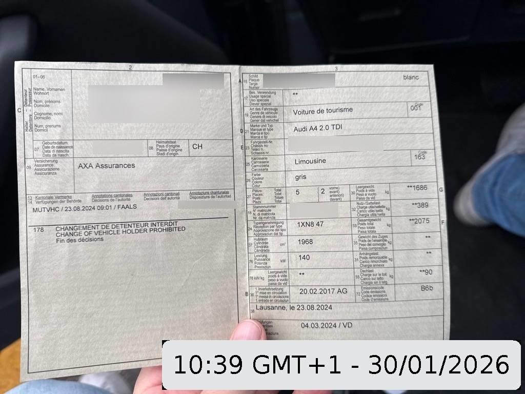 Rücksitzlehne geteilt abklappbar, Licht: Tagfahrlicht, Dekorelemente Aluminium Ellipse, Bremsenergie-Rückgewinnung, Autobahnblinkfunktion, Elektronische Differentialsperre (EDS), Xenon Plus-Scheinwerfer, Sicherheitslenksäule, Fahrer-Informationssystem, Mittelarmlehne vorn in Kunstleder schwarz mit Kontrastnaht in Rot, Sonnenblende zweifach, Wärmeschutzverglasung, Antiblockiersystem (ABS), Media: MMI Radio plus, Getönte Scheiben, Radwechselwerkzeug, Radiovorbereitung, Scheibenantenne, Ent- störung und 8 LS, Aschenbecher und Zigarettenanzünder, Höhenverstellbare Gurten vorne, Media: Digitaler Radioempfang (DAB), Bordcomputer, Leseleuchten vorne, Elektronische Parkbremse, Audi drive select, MMI basic, Media: Bluetooth-Schnittstelle, Garantie: 2 Jahre ohne Kilometerbegrenzung (ab 1. Inv.), Elektrische Fensterheber vorne + hinten, Aussentemperaturanzeige, Radschrauben mit Diebstahlsicherung, Leuchtweitenregulierung elektrisch, Stop/Start-Technologie, Klima: Klimatisierungsautomatik, Wagenheber, Elektronisches Stabilitäts-Programm (ESP), Tageskilometerzähler, Geschwindigkeitsbegrenzer, Stossstangen und Aussenspiegel in Wagenfarbe, Cupholder vorne, Gepäckraumklappe mit automatischer Öffnung, Lenkrad: Lenkrad längs- und höhenverstellbar, Digital Uhr, Kindersicherung an den hinteren Türen, Leichtmetallräder im 10-Speichen-Kristal Design 7,5x17J, Lackierung: Uni-Lackierung, 3 Kopfstützen hinten, Gurtstraffer vorne, Antriebsschlupfregelung (ASR), Lenkrad: Leder-Multifunktionslenkrad im 3-Speichen-Design, Partikelfilter und Oxydationskatalysator, Airbag: Window-Kopfairbags, Heckscheibenheizung, Kindersitzvorrichtung ISOFIX mit Deaktivierungsschalter für Beifahrer- Airbag, Zentralverriegelung mit Fernbedienung, Wartungsintervall-Anzeige, Sitze: Vordersitze manuell verstellbar, Polster: Stoff-Ausstattung, Nebelscheinwerfer, 3-Punkt-Sicherheitsgurte auf allen Plätzen, Sitze: Vordersitze höhenverstellbar, Teppichfussmatten vorne und hinten, Drehzahlmesser, Servolenkung geschwindigkeitsabhängig, Räder: Reifendruck-Kontrollanzeige, Seitenaufprall-Schutzsystem, Schlüsselloser Motorstart, Assist: Bremsassistent (BAS), Servotronic, Licht: Drittes Bremslicht, Audi pre sense city, Paket: Glanzpaket, Türgriffe aussen in Wagenfarbe, Warndreieck, Licht: Nebelschlussleuchte, Aussenspiegel rechts und links beheizbar und elektrisch verstellbar, Aktive Kopfstützen, Klima: Pollenfilter (Staubfilter), Wassertemperaturanzeige, Bremsbelag-Verschleissanzeige, Fahrwerk: Dynamisches Fahrwerk, Kofferraumfernentriegelung, Wegfahrsperre elektronisch, Airbag: Airbag Fahrer und Beifahrer, Innenlicht-Abschaltverzögerung, Seitenairbag für Fahrer und Beifahrer, Befestigungsösen im Laderaum, Brillenablage, Scheibenwischer vorne mit Intervall, Ablagen in den Türen, Sequentielles 7-Gang-Getriebe mit Automatikfunktion, Lichtwarnsummer, Räder: Reifenreparatur-Set (Tire Fit)