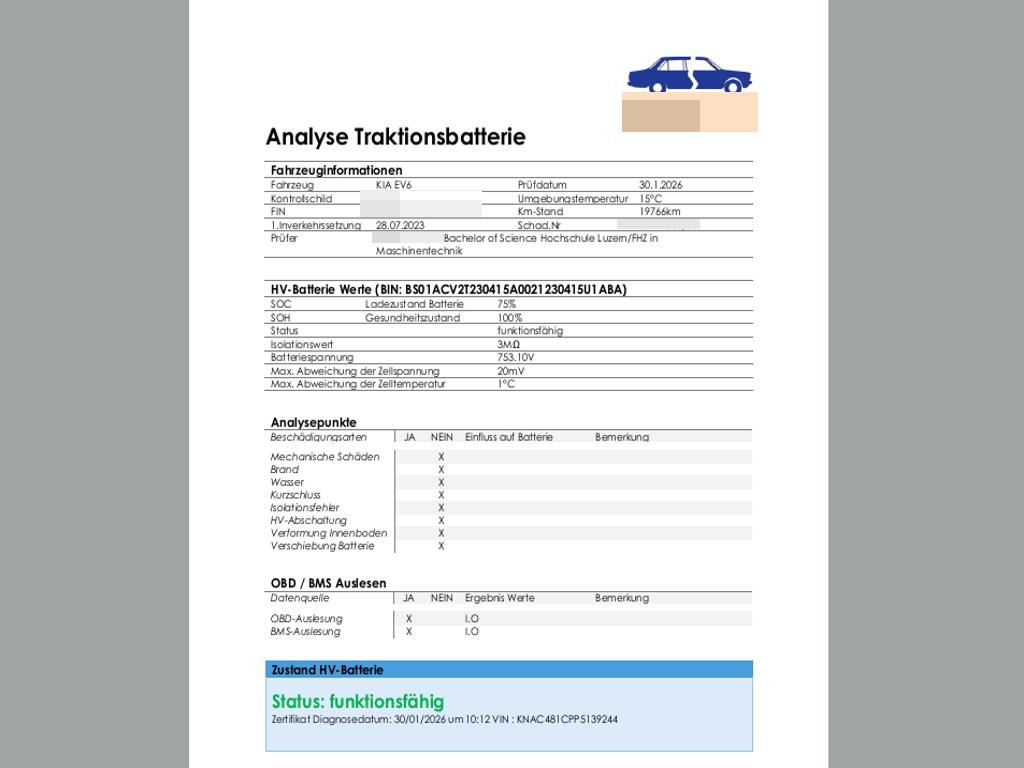 Die Hochvoltbatterie wurde geprüft und ist funktionsfähig