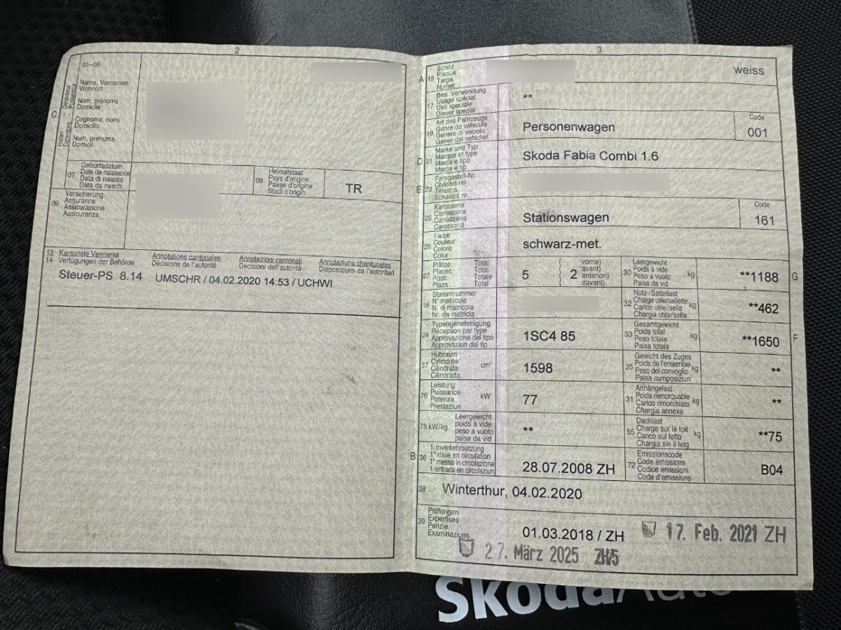 Fahrzeugausweis Vorhanden
