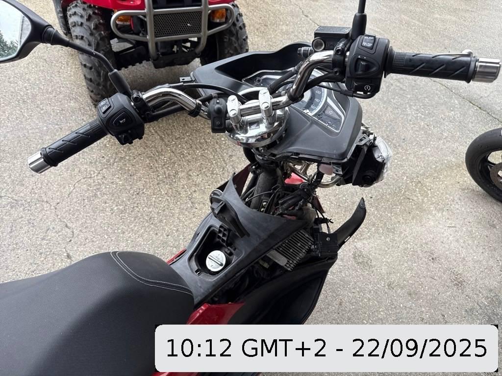 Aussenspiegel links, Aussenspiegel rechts, Front, Fussraster links, Fussraster rechts, Gabelholm, Kabelstrang, Lenkanschlag, Lenker, Lenkschloss, Rad vorne, Rahmen, Scheinwerfer, Schutzblech vorne, Seite links, Seite rechts, Verschalungen links, Verschalungen rechts, Verschalungen vorne, Windschutzscheibe, Zündschloss