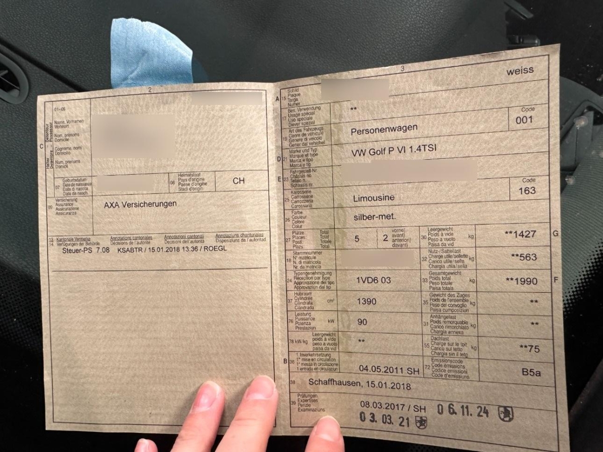 Fahrzeugausweis Vorhanden