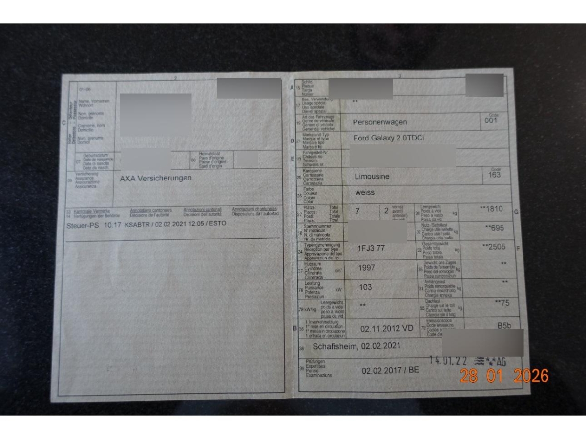 | Fahrzeugausweis | Vorhanden |