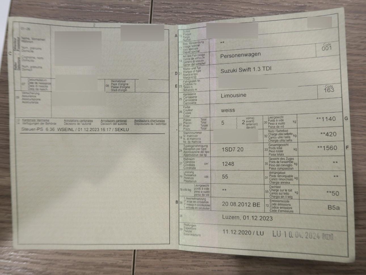 | Fahrzeugausweis | Vorhanden |