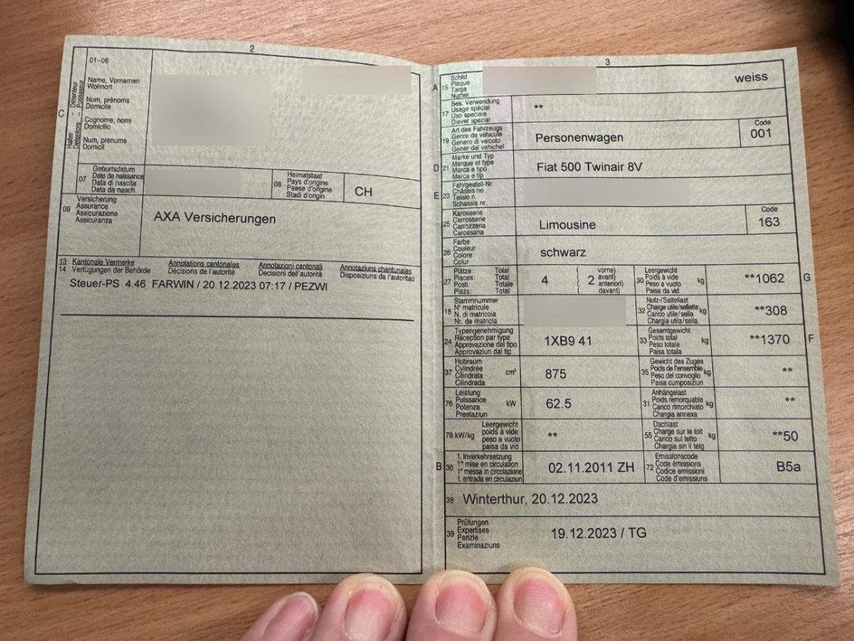 | Fahrzeugausweis | Vorhanden |