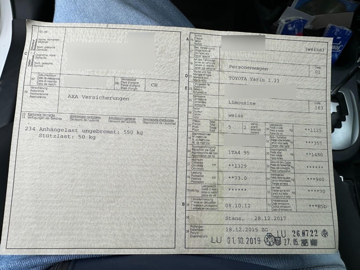 | Fahrzeugausweis | Vorhanden |