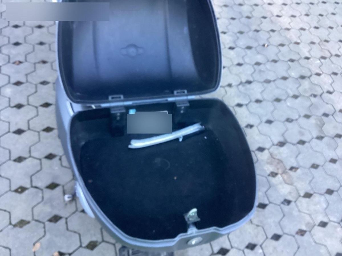 Aussenspiegel rechts, Diverse Anbauteile, Fussraster rechts, Griff rechts, Lenker, Schutzblech vorne, Seite rechts, Topcase, Verschalungen hinten, Verschalungen rechts