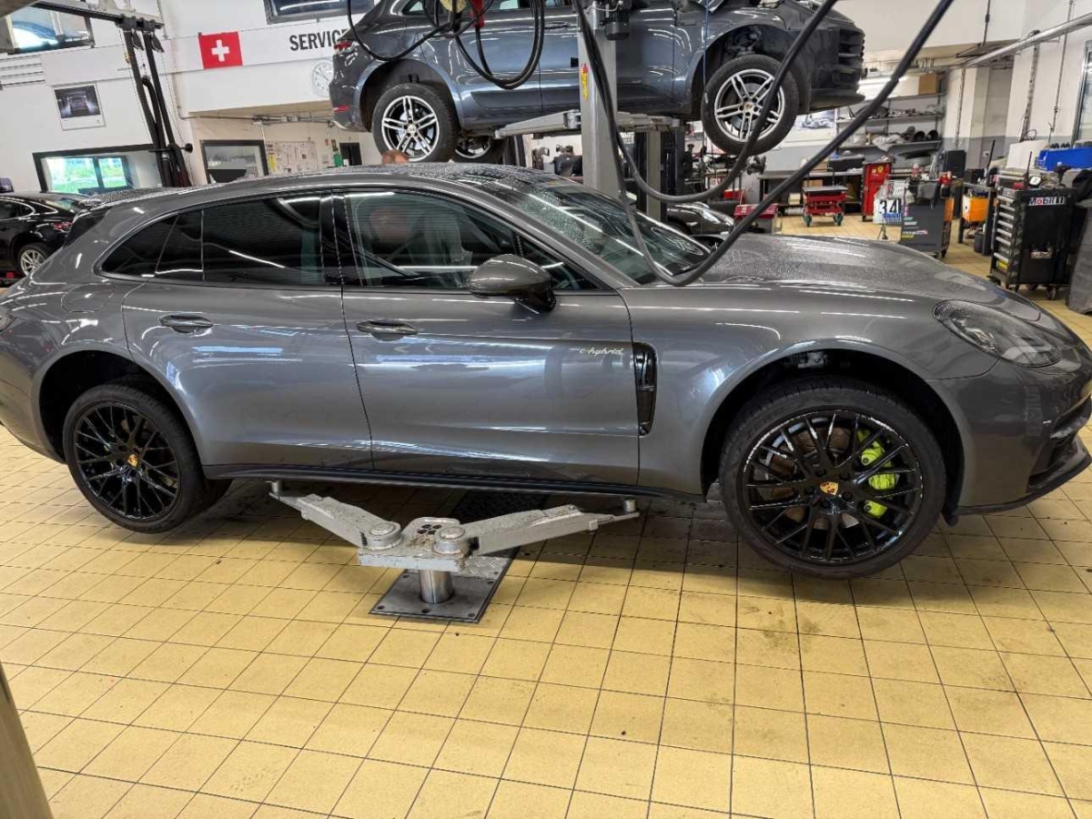 Porsche Communication Management (PCM) – inklusiv erweitertem Navigationsmodul, Auto Start-Stop-Funktion, Aktivkohlefilter (Geruchsfilter), Heckspoiler Schwarz, ISOFIX Kindersitzvorrichtung, Airbag: Knie-Airbag für Fahrer und Beifahrer, Getriebe: Porsche Doppelkupplungsgetriebe (PDK) Sequentielles 8-Gang-Getriebe mit Automatikfunktion, 80-l-Kraftstofftank, Airbag: Airbag Fahrer und Beifahrer, Elektronisches Stabilitäts-Programm (ESP), Licht: LED Scheinwerfer, Bremsbelag-Verschleissanzeige, Regensensor für Scheibenwischer vorne, Elektronische Parkbremse, Lenkrad: Multifunktions-Sportlenkrad in Leder, Lenkrad: Lenkrad längs- und höhenverstellbar, Ladekabelset, Heckspoiler, geschwindigkeitsabhängig elektrisch ausfahrbar, Info-Display, Fahrstabilisierungssystem Porsche – Stability-Management (PSM), Sitze: Einzelsitze hinten, Airbag: Thorax Seitenairbag für Fahrer und Beifahrer, Katalysator geregelt, Ablagen in den Türen, Sitze: Rücksitzlehne geteilt abklappbar, Airbag: Window-Kopfairbags, Aussenspiegel rechts und links beheizt-, elektrisch verstell- / und einklappbar mit Bodenbeleuchtung – auf Fahrerseite automatisch abblendend, Assist: Porsche Traction Management (PTM), Innenspiegel automatisch abblendbar, Ladekabel AC-Normalladen mit bis zu 3.6 kW, Assist: Parkassistent vorne und hinten, Laderaumrollo, Bordcomputer, Antiblockiersystem (ABS), Allradantrieb permanent, Wärmeschutzverglasung, Kofferraumbeleuchtung, Kopfstützen hinten, Innenlicht-Abschaltverzögerung, Klima: 2-Zonen-Klimaautomatik, Servolenkung, Assist: Tempomat, Wegfahrsperre elektronisch, Paket: Interieur Paket schwarz Hochglanz, Media: HiFi Lautsprechersystem, Bremssättel lackiert, Assist: Seitenaufprall-Schutzsystem, Seitenscheibenleisten schwarz, Drehzahlmesser, Porsche Active Suspension Management (PASM): Luftfederung inkl. Niveau- regulierung, Licht: LED-Tagfahrlicht, Räder: Reifendruckkontrollsystem, Einstiegsschienen Aluminium mit Logo, Ablagefach in Armlehne hinten, Zentralverriegelung mit Fernbedienung, Lackierung: Uni-Lackierung, Dekor: Interieur Paket in Serienfarbe, Beide Make up-Spiegel beleuchtet, Fussraumbeleuchtung vorne, Licht: Fahrlichtassistent (automatisches Fahrlicht), Heckscheibenheizung, Polster: Teilleder-Ausstattung, Bodenbeleuchtung in Aussenspiegel integriert, Leseleuchten, Schriftzug, Steckdose 12V, Automatische Heckklappenbetätigung, Cupholder hinten, Media: Porsche Connect inkl. Apple CarPlay – Online-Navigation (vgl. Porsche Communication Management) – Musik-Streaming und Online Radio – Remote Services – E-Mobility Services u.a. zum Lademanagement, der Steuerung der Fahrzeug Standklimatisierung oder dem Reichweitenmanagement – Zahlreiche, weitere Porsche Connect Dienste, Sitze: Komfortsitze, Beleuchtetes und abschliessbares Handschuhfach, Sitze: Vordersitze elektrisch verstellbar 8-fach, Räder: Reifenreparatur-Set mit Kompressor, Räder: 19-Zoll Panamera Räder, Mittelkonsole mit Ablagefach, Diebstahlwarnanlage mit Innenraumüberwachung, Mittelarmlehne vorne, mit 2 Getränkehaltern, Airbag: Curtain Airbag, Lenkrad: Lenkrad-Wippschaltung (Paddles), Ladekabel mit Tragtasche, Heckscheiben-Wisch-/Waschanlage, Media: 10 Lautsprecher, Pollenfilter (Staubfilter), Licht: LED Heckleuchten, Media: 2 USB-Ladeanschlüsse im Fond, Auspuffanlage mit 2 Endrohren (links und rechts), Bremsassistent (BAS)