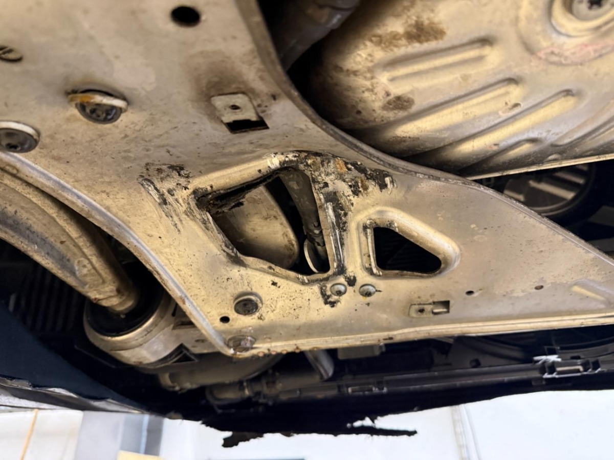 Achsträger, Auspuffanlage, Diverse Anbauteile, Kühler, Längsträger hinten links, Rad vorne rechts, Scheinwerfer links, Stosstange vorne, Vorderachse, Wagenboden, Ölwanne