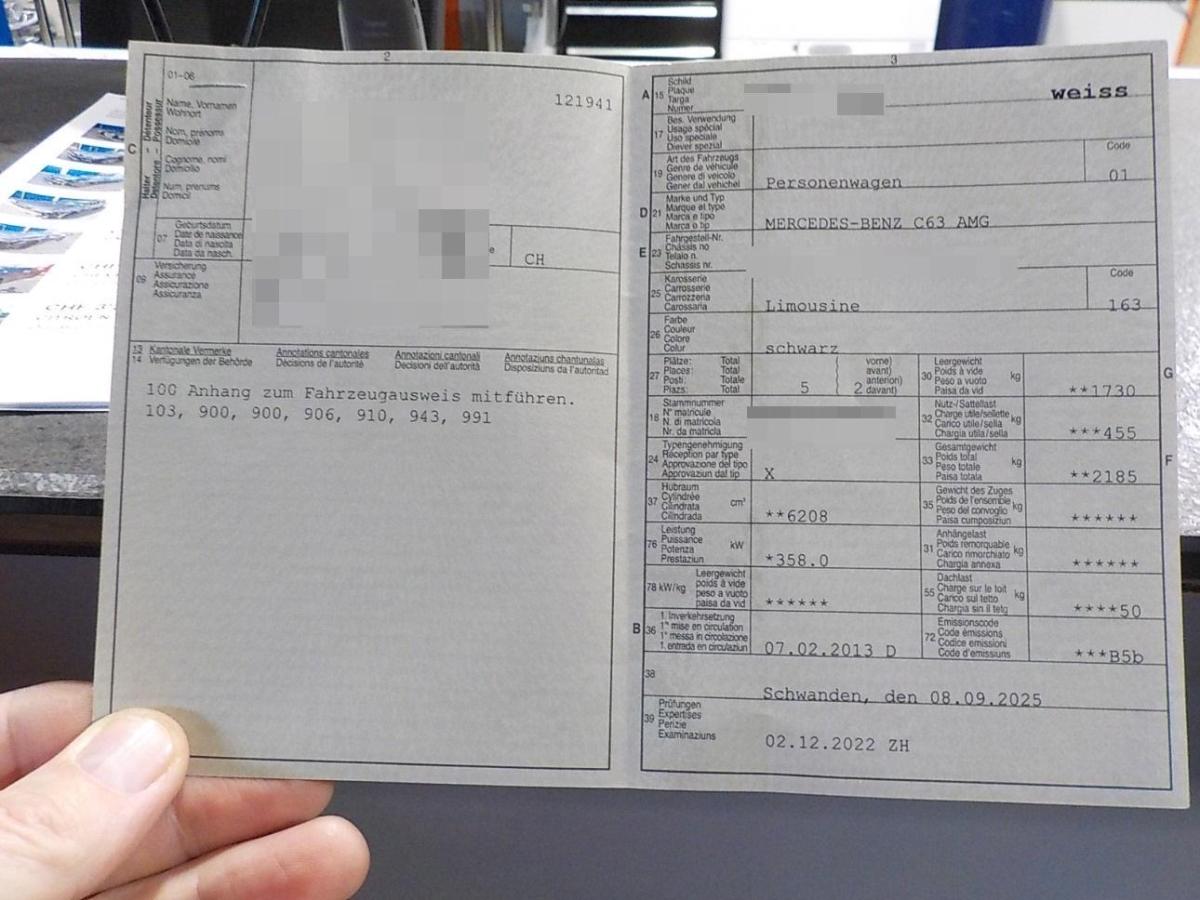 Airbag: Airbag Fahrer und Beifahrer, Regensensor für Scheibenwischer vorne, Wartungsintervall-Anzeige, Sitze: ISOFIX Kindersitzvorrichtung, Polster:Polsterung Ledernachbildung ARTICO / Microfaser DINAMICA, Fahrwerk:AMG Sportfahrwerk, Innenlicht-Abschaltverzögerung, Sitze:AMG Sportsitze, Airbag: Window-Kopfairbags, AMG Motorhaube, Assist: ATTENTION ASSIST (Aufmerksamkeitsassistent), Reiserechner, Elektronisches Stabilitäts-Programm (ESP), Airbag: Knie-Airbag für Fahrer, Beide Make up-Spiegel beleuchtet, Airbag: Seitenairbag für Fahrer und Beifahrer, Beleuchtetes und abschliessbares Handschuhfach, Aussentemperaturanzeige, Sitze: Armlehne vorne mit Ablagefach, Katalysator geregelt, Klima: Klimatisierungsautomatik THERMATIC mit 2-Klimazonen, Wegfahrsperre elektronisch, Kraftstofftank 66 Liter, AMG Kühlergrill, 7-Stufen-Automat AMG SPEEDSHIFT MCT, AMG Abrisskante, AMG Einstiegleisten, AMG Performance Lenkrad mit Alcantara- Einsätzen, AMG Sportbremsanlage mit Verbundbrems- scheibe an der Vorderachse, AMG-Leichtmetallräder 5-Doppelspeichen- Design 18J, Aluminiumapplikationen dunkel, gebürstet, Antiblockiersystem (ABS), Antriebsschlupfregelung (ASR), Assist:ADAPTIVE BRAKE mit HOLD-Funktion und Berganfahrhilfe, Audio 20 Radio CD/MP3 mit Farbdisplay, Bluetooth-Schnittstelle mit Freisprech- funktion, Aux-in-Anschluss und Telefon- tastatur, Aussenspiegel rechts und links beheizbar und elektrisch verstellbar, Blinker in Aussenspiegel, Bremsassistent (BAS), Bremssättel rot lackiert, Digital Uhr, Drehzahlmesser, Drittes Bremslicht LED, Durchlademöglichkeit in der Rücksitzbank inkl. Mittelarmlehne hinten, Elektrische Fensterheber vorne + hinten mit Komfortschliessung, Fondbeleuchtung, Gurtstatusanzeige für Fondsitze, Gurtstraffer vorne und hinten, Handschuhfach klimatisierbar, Heckscheibe heizbar mit Zeitsteuerung, Höhenverstellbare Gurten vorne + hinten, Innenbeleuchtung im Laderaum, Kartentaschen an den Rückenlehnen, Kofferraumfernentriegelung, Kombifilter, LED-Tagfahrlicht (Stableuchte), Lackierung: Uni-Lackierung, Lenkrad längs- und höhenverstellbar, Lenkrad: Lenkrad-Wippschaltung (Paddles), Leseleuchten vorne, Leuchtweitenregulierung automatisch, Licht: Fahrlichtassistent (automatisches Fahrlicht), Licht: LED Heckleuchten, Licht: Nebelschlussleuchte, Licht:Adaptives Bremslicht, Licht:Nebelscheinwerfer, Mittelkonsole mit Ablagefach, NECK-PRO Kopfstützen vorne, Paket: AMG Styling-Paket, Radiovorbereitung, Scheibenantenne, Ent- störung und 6 LS, Reifendruckverlust-Warnsystem, Räder:Reifenreparatur-Set mit Kompressor, Schalt- / Wählhebel in Aluminiumoptik, Scheibenwischer vorne mit Intervall, Seitenaufprall-Schutzsystem, Sitze: Gurtwarneinrichtung für Fahrer- und Beifahrersitz, Sitze:Sitzbelegungserkennung für Beifahrersitz, Sport-Parameterlenkung, Sportpedalanlage, Tageskilometerzähler, Tempomat inkl. SPEEDTRONIC, Umgebungslicht, Verbandskasten, Wassertemperaturanzeige, Wärmeschutzverglasung, Zentralverriegelung mit Fernbedienung