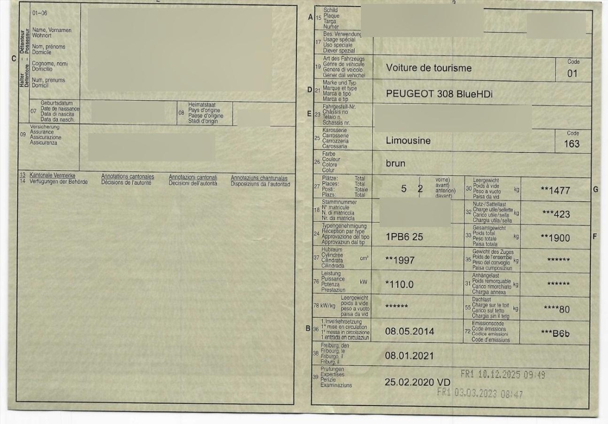| Fahrzeugausweis | Vorhanden |