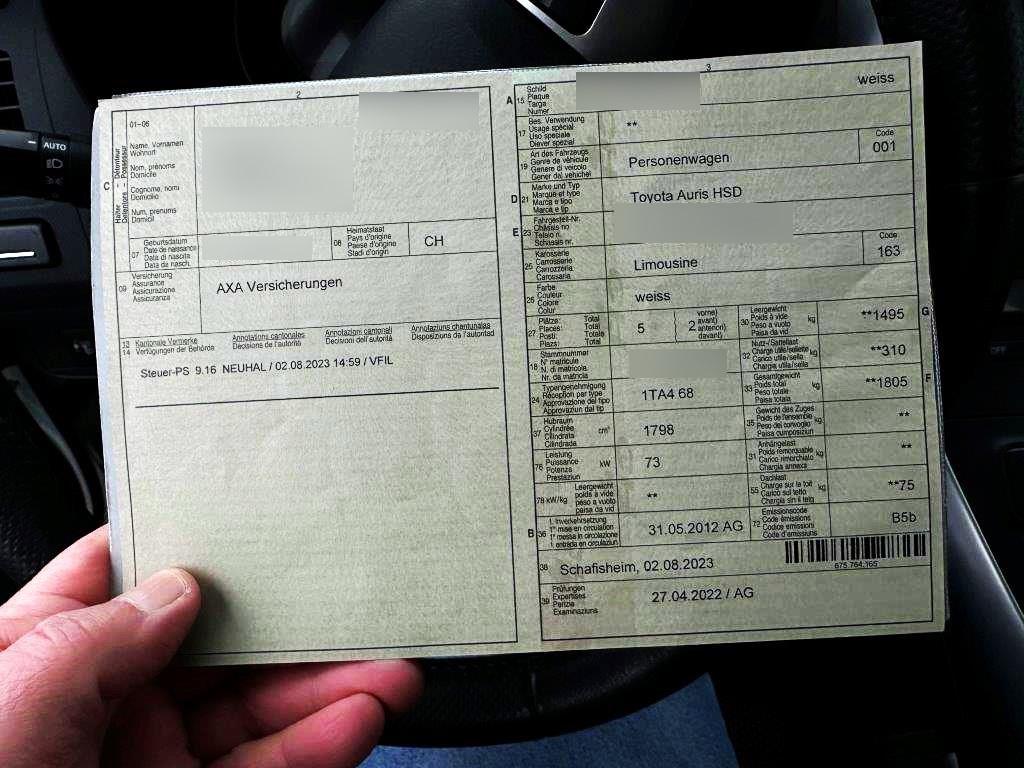 Pollenfilter (Staubfilter), Radiovorbereitung, Dachantenne und, Heckscheiben-Wisch-/Waschanlage, Leuchtweitenregulierung von innen, Sitze: Vordersitze heizbar, 3-Punkt-Sicherheitsgurte auf allen Plätzen, Gurtstraffer vorne, Tageskilometerzähler, Leseleuchten, Wegfahrsperre elektronisch, Assist: Tempomat, Servolenkung geschwindigkeitsabhängig, Media: 6 Lautsprecher, Aussenspiegel rechts und links beheizbar und elektrisch verstellbar, Mittelarmlehne vorne, Airbag: Seitenairbag für Fahrer und Beifahrer, Elektrische Fensterheber vorne + hinten, Regen- und Dämmerungssensor, Licht: Drittes Bremslicht, 3 Kopfstützen hinten, Räder: Reifenreparatur-Set (Tire Fit), Licht: Nebelscheinwerfer, Seitenaufprall-Schutzsystem, Höhenverstellbare Gurten vorne, Getönte Scheiben, Wassertemperaturanzeige, Armlehne vorne mit Ablagefach, Sitze: Fahrersitz höhenverstellbar, Sitze: Sportsitze vorne, Radiofernbedienung, Beide Make up-Spiegel beleuchtet, Handschuhfach, Aussentemperaturanzeige, Assist: Rückfahrkamera, Airbag: Window-Kopfairbags, Cupholder vorne, Digital Uhr, Licht: LED-Tagfahrlicht, Sitze mit Schleudertrauma-Schutzsystem, Laderaumabdeckung, Smart Entry-/Start-System, Klima: Klimatisierungsautomatik, Heckscheibenheizung, Mittelkonsole mit Ablagefach, Antiblockiersystem (ABS), Stossstangen, Aussenspiegel und Türgriff in Wagenfarbe, Media: USB+AUX-Anschluss, Licht: Nebelschlussleuchte, Media: Multimedia Audiosystem Toyota Touch, Räder: Leichtmetallfelgen 17J mit Pneu, Bremsassistent (BAS), Ablagefach unter dem Beifahrersitz, ISOFIX Kindersitzvorrichtung, Innenlicht-Abschaltverzögerung, Katalysator geregelt, Aluminium-Applikationen, Tankdeckel-Entriegelung von innen, Media: Bluetooth-Schnittstelle, Lackierung: Uni-Lackierung, Berganfahrhilfe (Hill Holder), Airbag: Airbag Beifahrer deaktivierbar, Airbag: Knie-Airbag für Fahrer, Scheibenwischer vorne mit Intervall, Airbag: Airbag Fahrer und Beifahrer, Sitze: Rücksitzlehne geteilt abklappbar, Heckspoiler, Getriebe: Stufenloser Automat, Info-Display, Multifunktionsanzeige, Lenkrad: Lenkrad längs- und höhenverstellbar, Innenspiegel automatisch abblendbar, Stabilitäts- und Traktionskontrolle (VSC und TRC), Lenkrad: Lederlenkrad, Drehzahlmesser, Polster: Stoff-Ausstattung