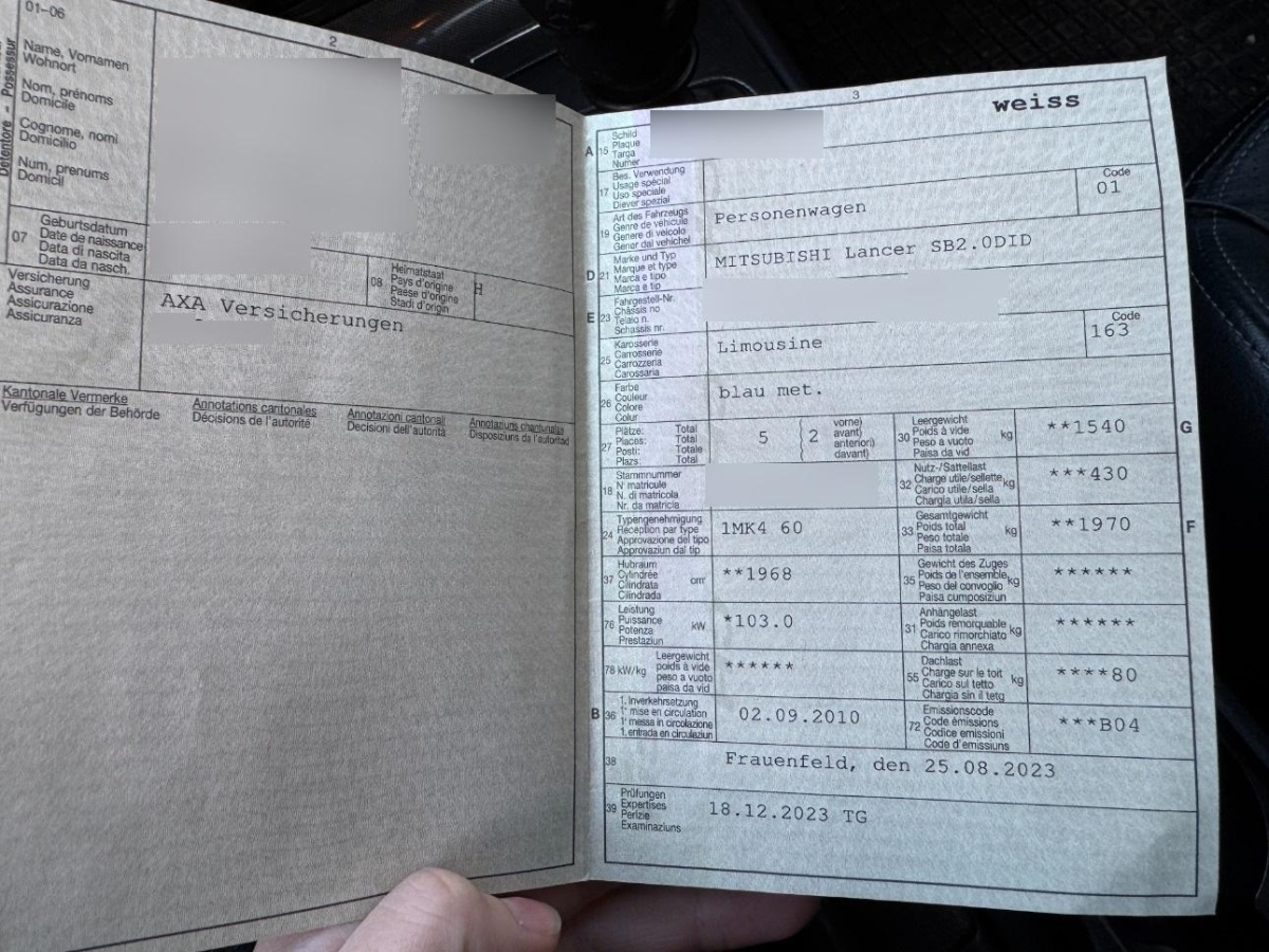 | Fahrzeugausweis | Vorhanden |