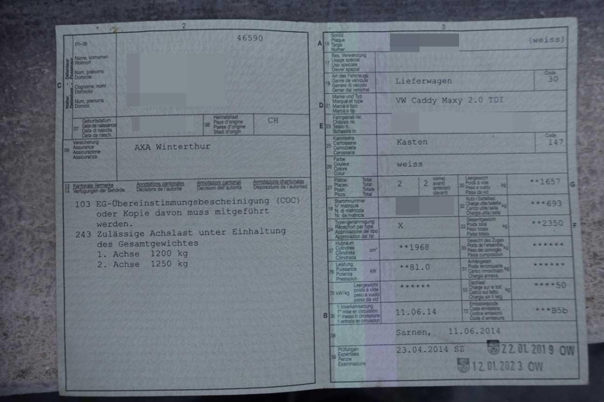 Fahrzeugausweis Vorhanden