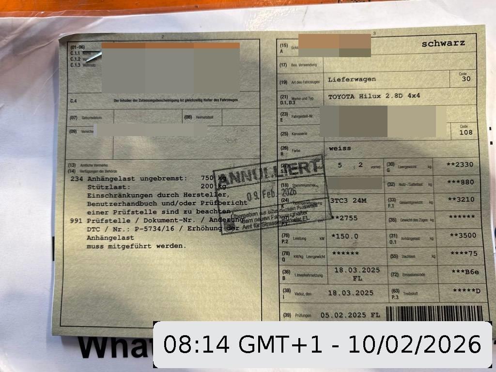 | Fahrzeugausweis | Vorhanden |