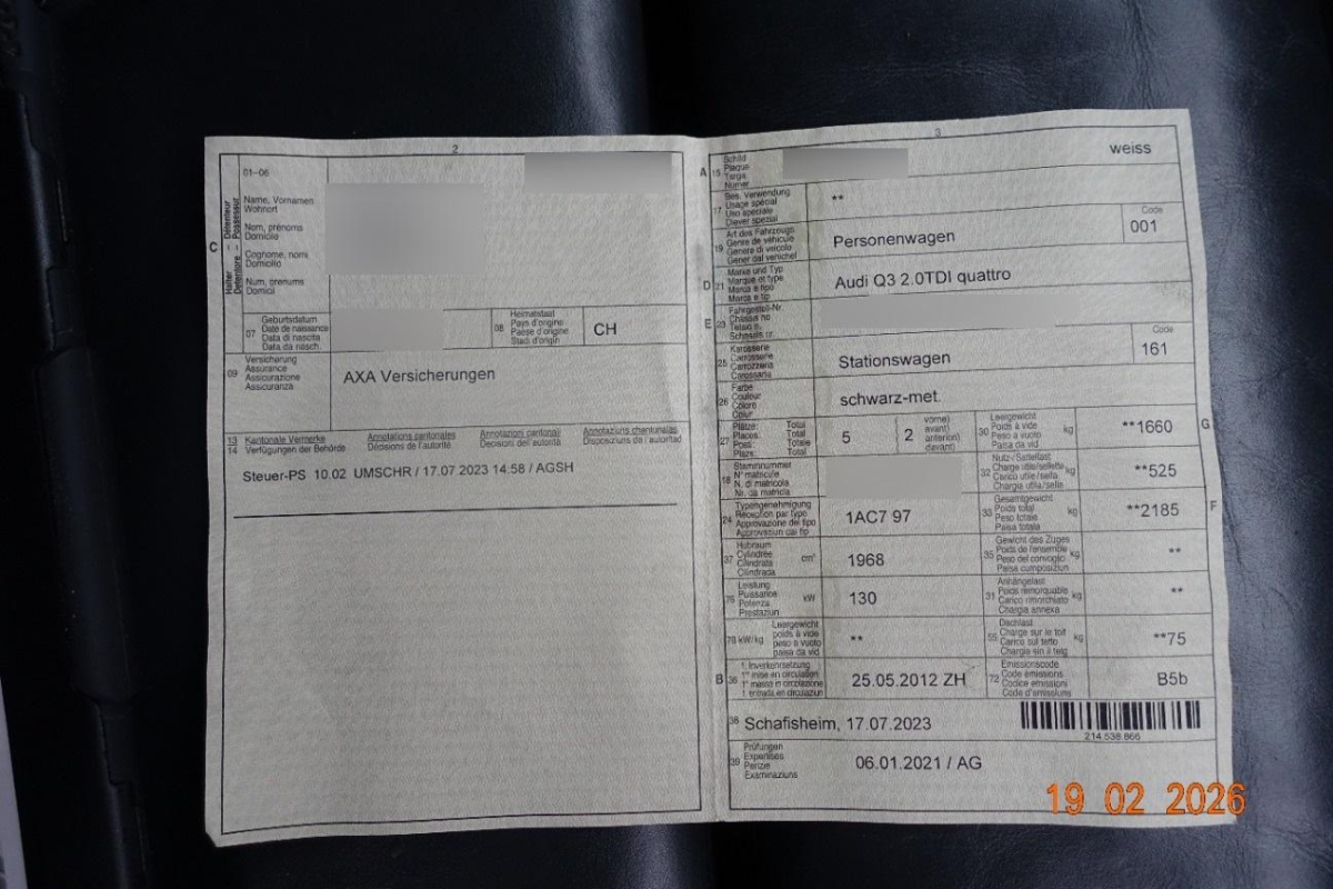 Gurtkontrolle, Make up-Spiegel links, Sitze: Vordersitze höhenverstellbar, Leuchtweitenregulierung von innen, Scheibenwischer vorne mit Intervall, Bremsbelag-Verschleissanzeige, Sitzbezüge Stoff, Start-/Stopp-Automatik, Airbag: Window-Kopfairbags, Elektrische Fensterheber vorne + hinten mit Komfortschliessung, Airbag: Airbag Fahrer und Beifahrer, Seitenaufprall-Schutzsystem, Kopfstützen hinten höhenverstellbar, 3-Punkt-Sicherheitsgurte auf allen Plätzen, Licht: Tagfahrlicht, Kofferraumbeleuchtung, Wagenheber, Wendeladeboden, Allradantrieb permanent, Elektronisches Stabilitäts-Programm (ESP) mit Reifendruckkontrolle, ISOFIX-Befestigungspunkte für Kindersitz an den äusseren Rücksitzen, Aschenbecher und Zigarettenanzünder, Auspuffanlage mit 2 Endrohren, 4 Speichen-Lederlenkrad, Innenspiegel abblendbar, Klima: Klimaanlage, Ablagen in den Türen, Nebelscheinwerfer, Partikelfilter und Oxydationskatalysator, Kopfstützen vorne höhenverstellbar, Servotronic, Licht: Drittes Bremslicht, Kindersicherung an den hinteren Türen, Fahrer-Informationssystem, Heckscheiben-Wisch-/Waschanlage, Durchladeöffnung im Kofferraum, LED Blinker im Aussenspiegel, Wegfahrsperre elektronisch, Gurtstraffer vorne, Bergabfahrassistent, Veloursfussmatten vorne und hinten, Cupholder vorne, Assist: Berganfahrassistent, Garantie: 2 Jahre ohne Kilometerbegrenzung (ab 1. Inv.), Notrad, Radio Chorus, Wartungsintervall-Anzeige, Licht: Nebelschlussleuchte, Zentralverriegelung mit Fernbedienung und automatischer Türverriegelung, Leseleuchten vorne, Licht: Halogenscheinwerfer, Servolenkung geschwindigkeitsabhängig, Sequentielles 7-Gang-Getriebe mit Automatikfunktion, Seitenairbag für Fahrer und Beifahrer, Lackierung: Uni-Lackierung, Lenkrad: Lenkrad längs- und höhenverstellbar, Wärmeschutzverglasung, 12-Volt-Steckdose vorne, Frontscheibe Verbundglas, Aussenspiegel rechts und links elektrisch verstell- und beheizbar und Scheibenwaschdüsen beheizbar, Innenlicht-Abschaltverzögerung, Aktive Kopfstützen, Dachreling schwarz, Aussentemperaturanzeige, Fahrwerk: Dynamisches Fahrwerk, Heckscheibenheizung, Leichtmetallräder im 10-Speichen-Design 17J, Elektronische Parkbremse, Laderaumabdeckung faltbar und herausnehmbar, Rücksitzlehne geteilt abklappbar, Make up-Spiegel rechts, Höhenverstellbare Gurten vorne, ABS mit ASR und EDS, Beleuchtetes Handschuhfach, Leseleuchten hinten, Klima: Pollenfilter (Staubfilter), Aussenspiegel in Wagenfarbe