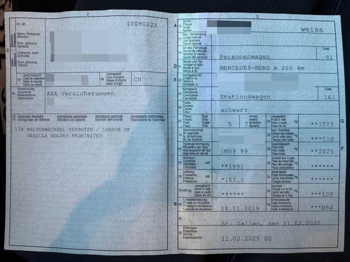 Fahrzeugausweis Vorhanden
