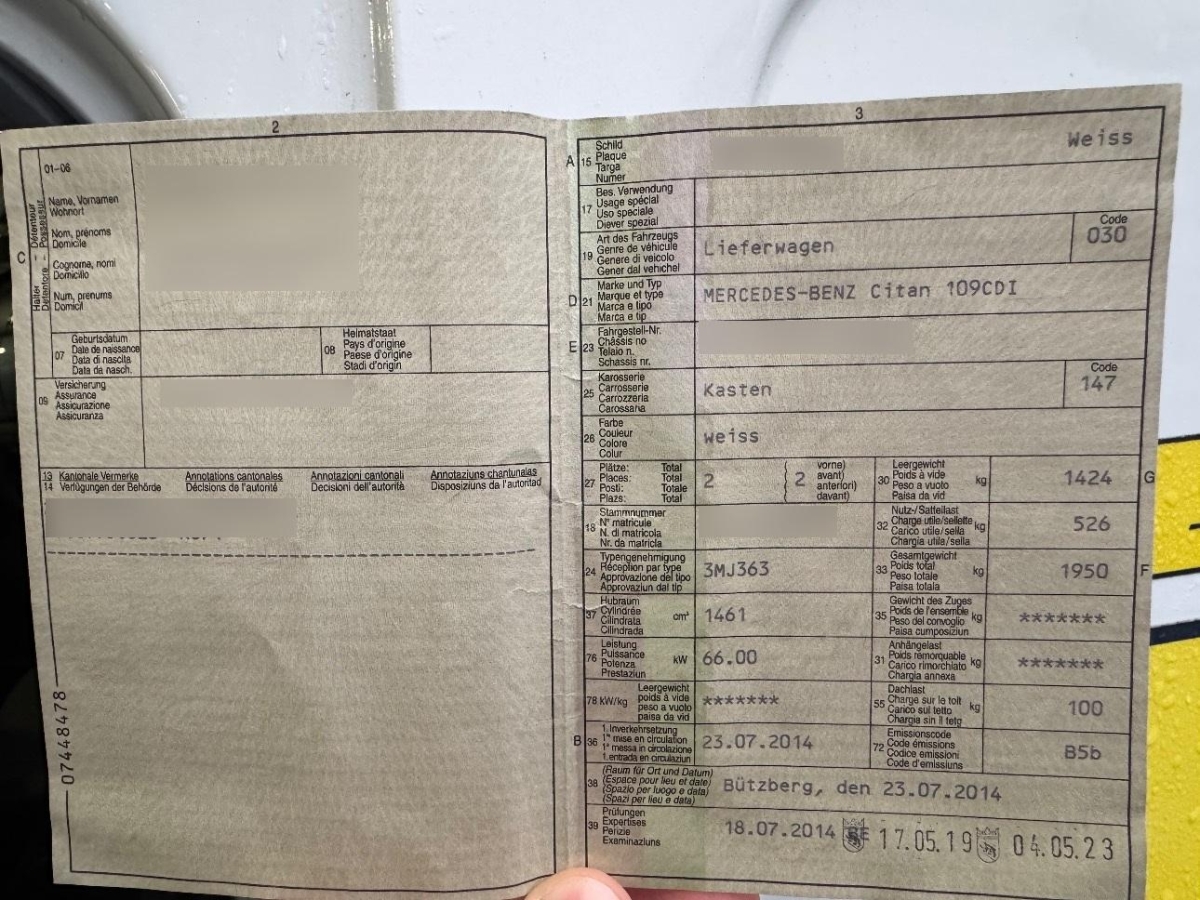 Fahrzeugausweis Vorhanden