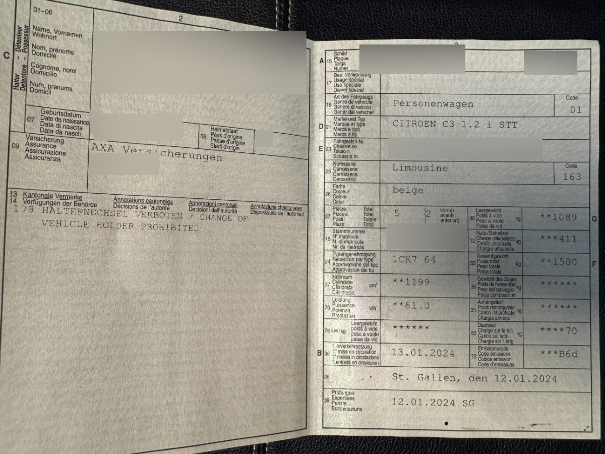 | Fahrzeugausweis | Vorhanden |