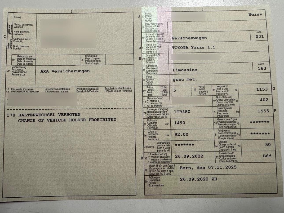 Die (vom Fahrzeugexperten) ermittelten Reparaturkosten beziehen sich auf das versicherte Ereignis. Allfällige zusätzliche, nicht versicherte Schäden/Vorschäden, sind in den Reparaturkosten nicht enthalten. Die deklarierten Ausstattungsmerkmale können von der effektiven Ausstattung abweichen.