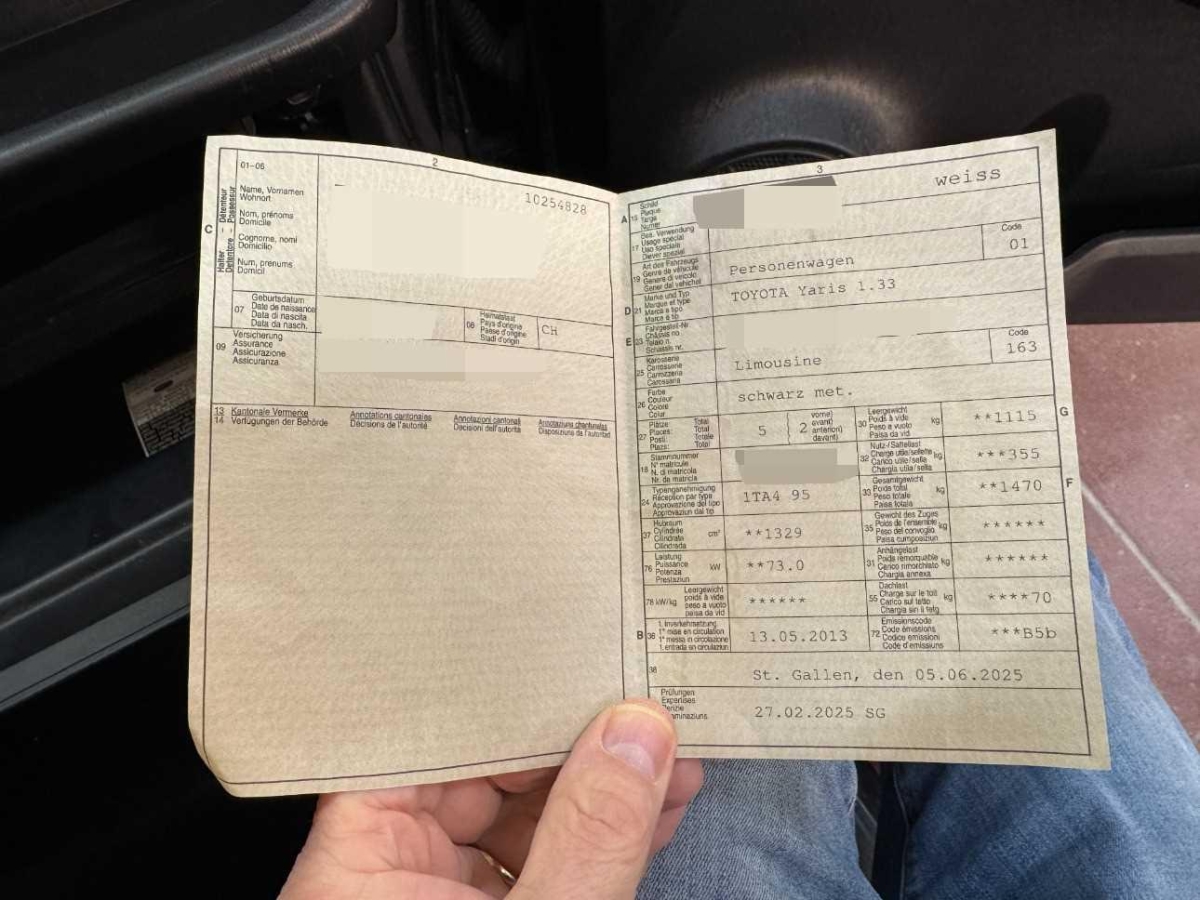 3-Punkt-Sicherheitsgurte auf allen Plätzen, Farbmonitor, Laderaumabdeckung, Kartentaschen an den Rückenlehnen, Polster: Stoff-Ausstattung, Heckscheiben-Wisch-/Waschanlage, Ablagen in den Türen, Servolenkung, Innenspiegel automatisch abblendbar, 12-Volt-Steckdose vorne, Radio CD, MP3 und WMA, Getriebe: 6-Gang-Getriebe, Aussenspiegel rechts und links beheizbar und elektrisch verstellbar, Multifunktionsanzeige, ISOFIX Kindersitzvorrichtung, Media: Multimedia Audiosystem Toyota Touch, Lenkrad: Lenkrad, Schaltknauf und Handbremshebel Leder, Lichtwarnsummer, Sitze mit Schleudertrauma-Schutzsystem, Höhenverstellbare Gurten vorne, Kopfstützen hinten, Wärmeschutzverglasung, Elektrische Fensterheber vorne, Airbag: Airbag Beifahrer deaktivierbar, Gurtstraffer vorne, Klima: Klimaanlage, Lenkrad: Lenkrad längs- und höhenverstellbar, Bremsassistent (BAS), Leseleuchten vorne, Stahlräder, Media: USB+AUX-Anschluss, Katalysator geregelt, Media: Radiovorbereitung, Antenne, Entstörung und 6 LS, Räder: Reifenreparatur-Set (Tire Fit), Tankdeckel-Entriegelung von innen, Tageskilometerzähler, Digitaler Radioempfang (DAB) Vorbereitung, Lackierung: Uni-Lackierung, Blinker in Aussenspiegel, Digital Uhr, Handbremshebel in Leder, Drehzahlmesser, Stossstangen und Aussenspiegel in Wagenfarbe, Assist: Rückfahrkamera, Sitze: Fahrersitz höhenverstellbar, Licht: Nebelschlussleuchte, Aussentemperaturanzeige, Zentralverriegelung mit Fernbedienung, Heckscheibenheizung, Pollenfilter (Staubfilter), Airbag: Seitenairbags, Sitze: Rücksitzlehne geteilt abklappbar, Make up-Spiegel rechts, Handschuhfach, Licht: Abblendlichtausschaltverzögerung 'Follow me home’, Räder: Radzierblenden, Airbag: Window-Kopfairbags, Airbag: Knie-Airbag für Fahrer, Türgriffe aussen in Wagenfarbe, Cupholder vorne und hinten, Media: Bluetooth-Schnittstelle, Türgriffe innen verchromt, Licht: LED Heckleuchten, Make up-Spiegel links, Airbag: Airbag Fahrer und Beifahrer, Lenkrad: Multifunktionslenkrad mit Radiobedienung, Haltegriffe 2 vorne und 2 hinten, Stabilitäts- und Traktionskontrolle (VSC und TRC), Licht: Drittes Bremslicht, Wegfahrsperre elektronisch, Antiblockiersystem (ABS)